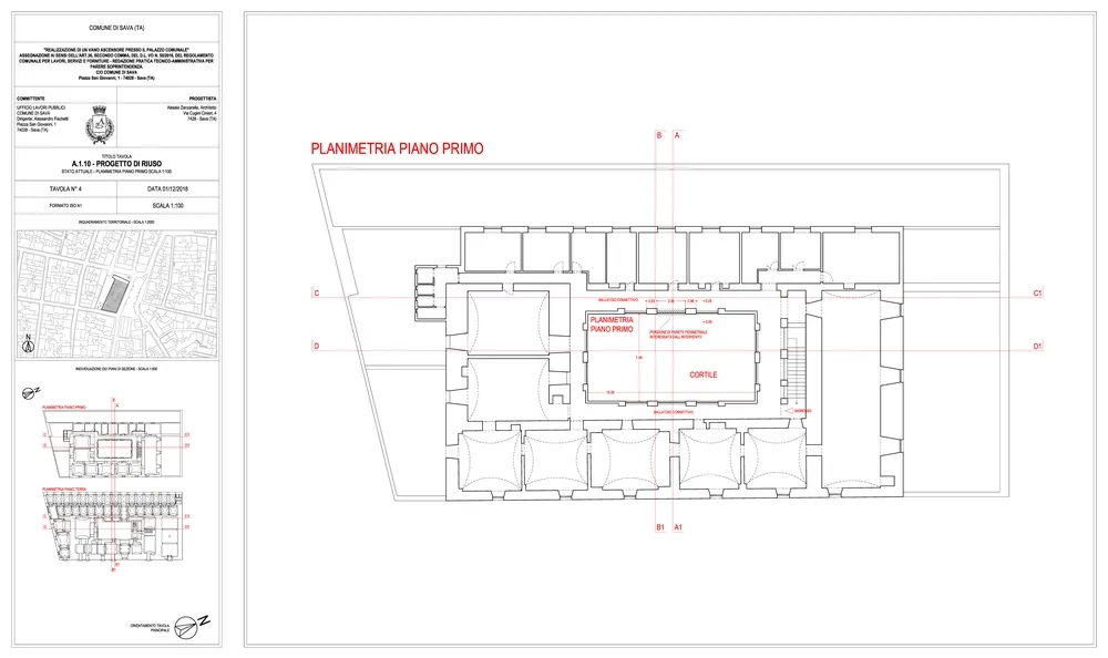 Scrivo questo articolo un po' amareggiato per via del fatto che la Soprintendenza dei Beni Culturali di Taranto non ha approvato la mia 1ª bozza del progetto ASCENSORE presentata a luglio dello scorso anno (vedi LINK), ma contento nello stesso tempo di aver ricevuto invece pochi giorni fa l'approvazione della nuova 2ª proposta che prevede un vano ascensore completamente vetrato, collocato in un'altra zona dell'atrio, in adiacenza ad un locale dismesso che costituirà l'ingresso e sala d'attesa, così come ha prescritto la Soprintendenza. Nell'articolo, oltre alle tavole del PROGETTO APPROVATO, inserisco volentieri alcune foto di come si presenta attualmente il cortile, prima che comincino i lavori, anche per lasciare una traccia fotografica dello spazio che presto cambierà volto.
