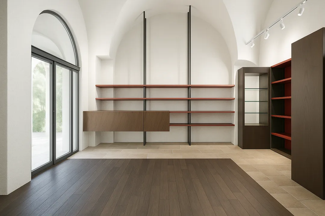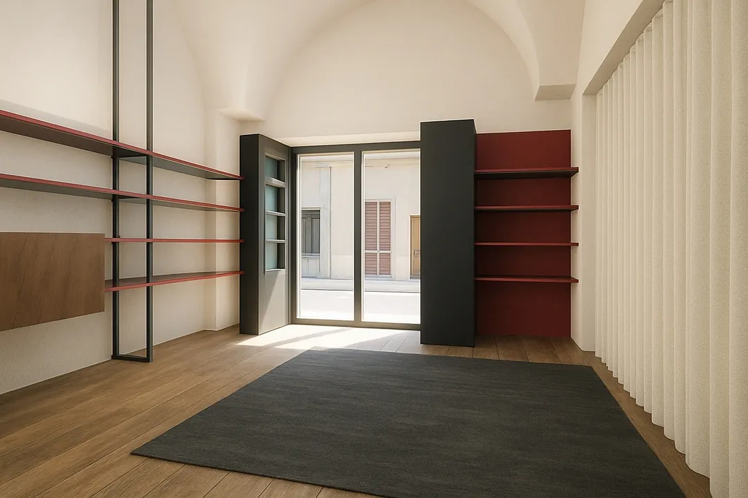 Proposta di riconfigurazione di uno spazio da convertire in casa-laboratorio (FLIOMENA LAB). Filomena V. è un'artista di Manduria (TA) che si occupa di vetrate con legatura a piombo. Lei necessita di ristrutturare il suo spazio, così ha incaricato l'architetto Zanzarella di ideare una nuova disposizione degli ambienti in modo da poter ottenere una sala espositiva nella prima stanza voltata, situata in corrispondenza dell'ingresso all'edificio. La particolarità del progetto è insita soprattutto nel trattamento dell'esterno, ideato (come si vede dal video) in modo tale da chiudere completamente le aperture con robuste porte scorrevoli di lamiera trattata che si azionano con un sistema elettrico.