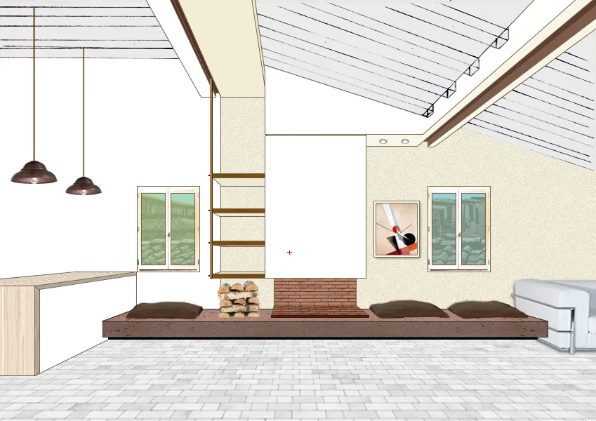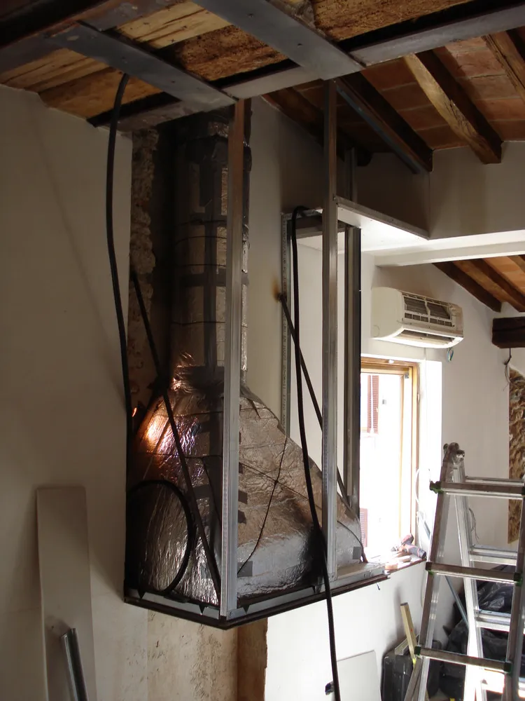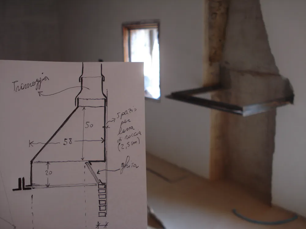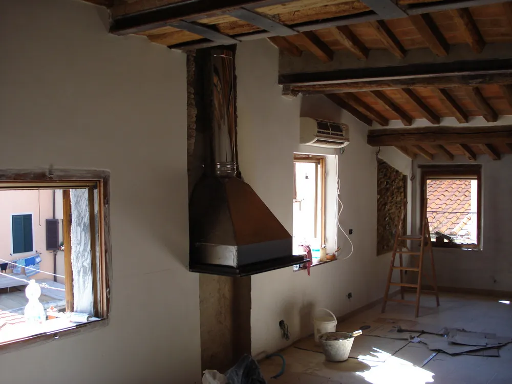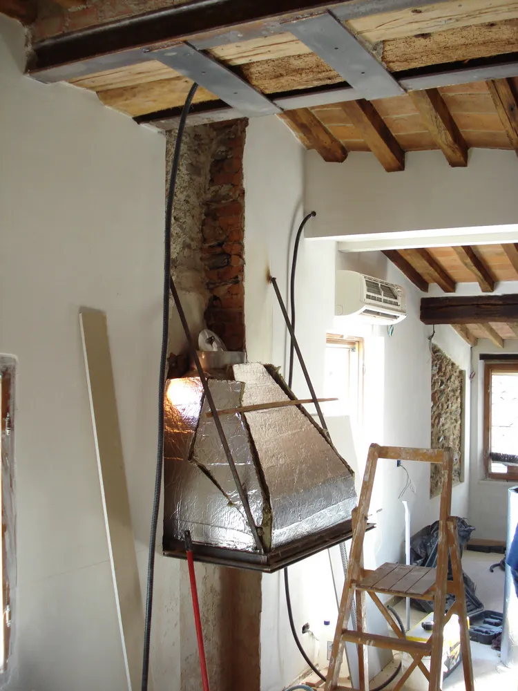 Terminati i lavori di recupero di una porzione di un vecchio edificio nel centro storico di Pietrasanta (LU) da adibire a spazio living con camino. In questa occasione ho sviluppato un progetto di camino "su misura" con le seguenti caratteristiche: