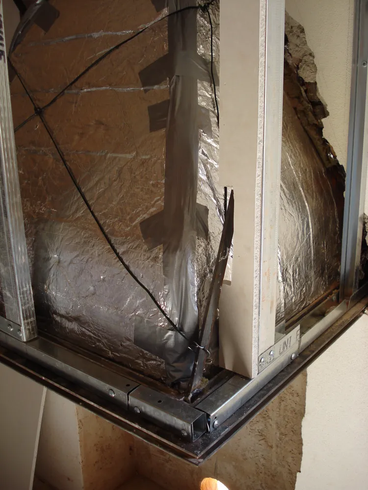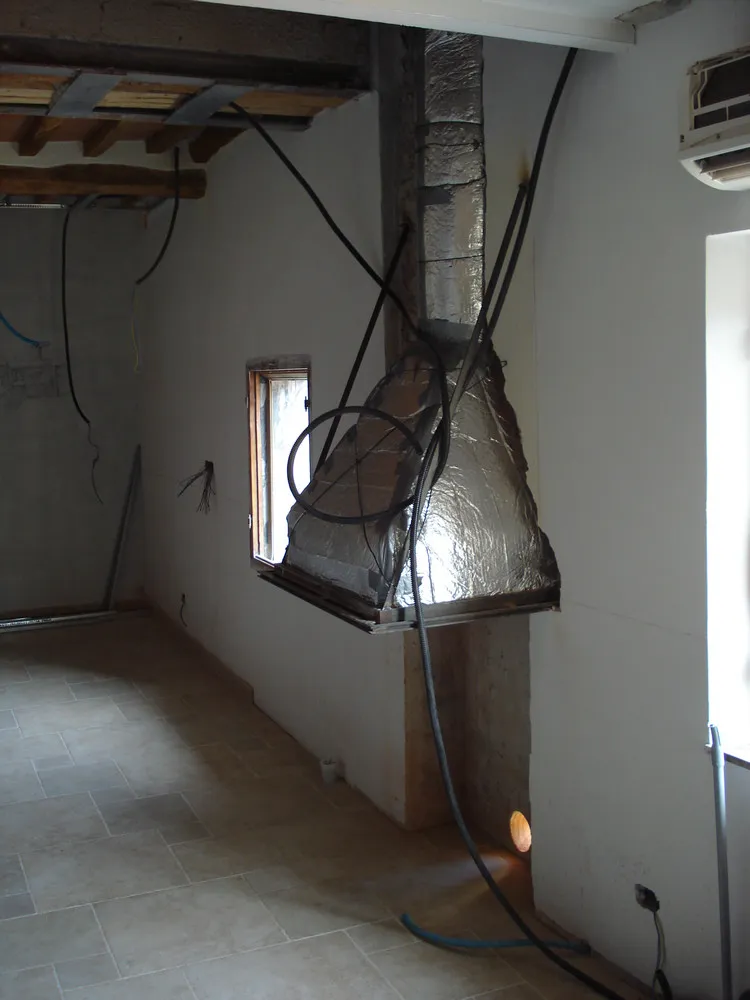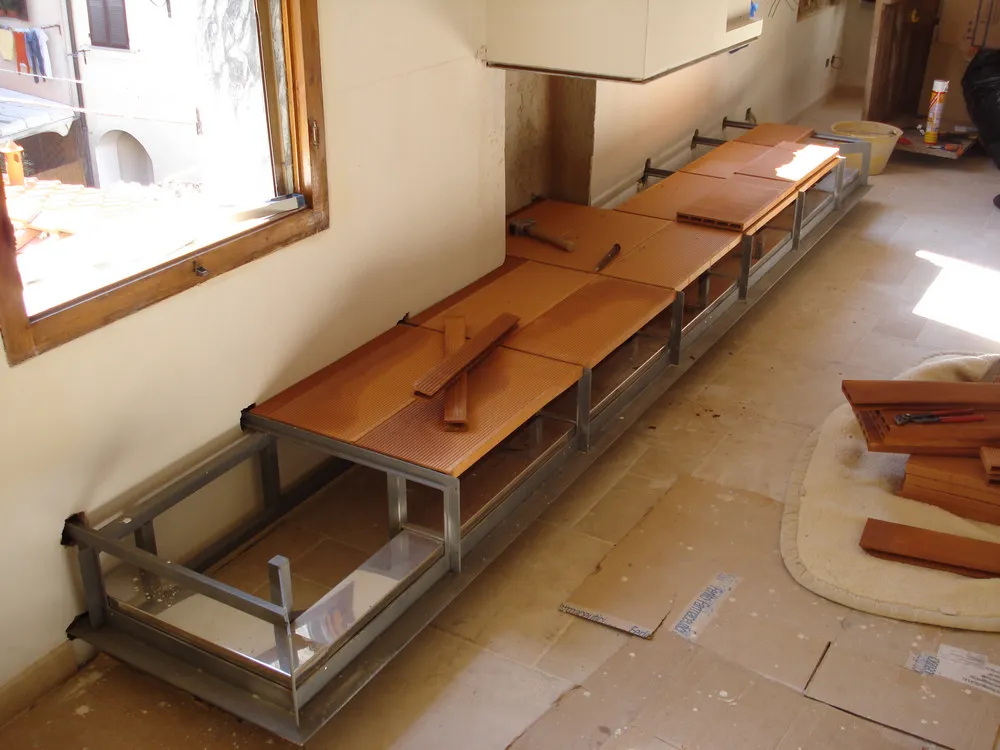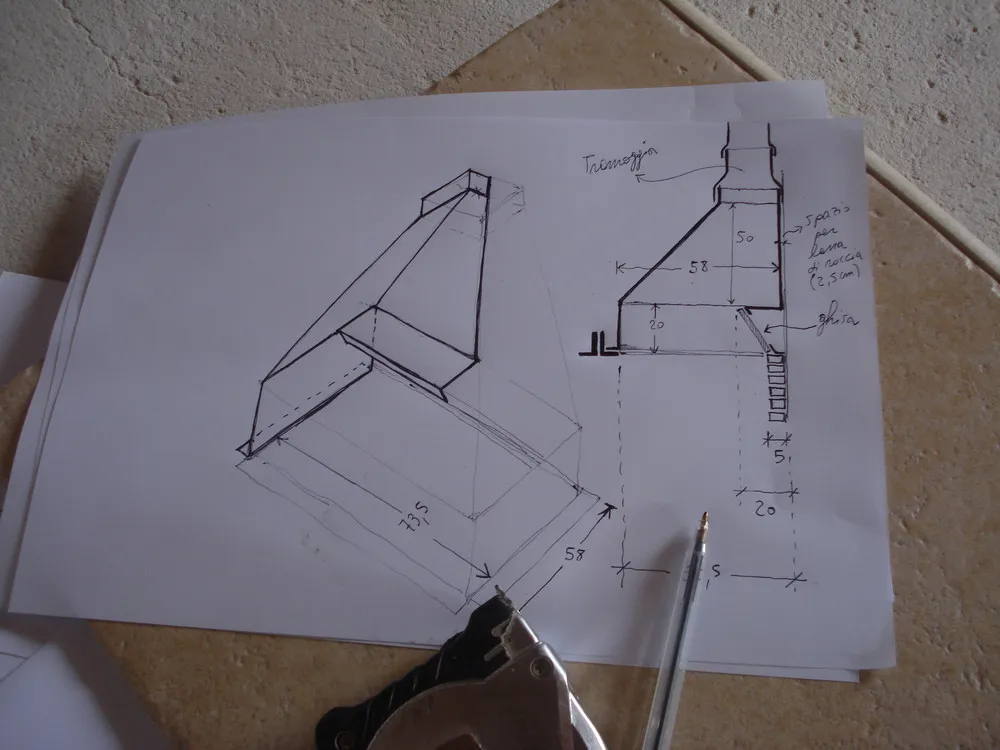 - trave di struttura della contro-cappa in metallo, realizzata in modo tale che avesse delle feritoie e fungesse da sistema di areazione;
