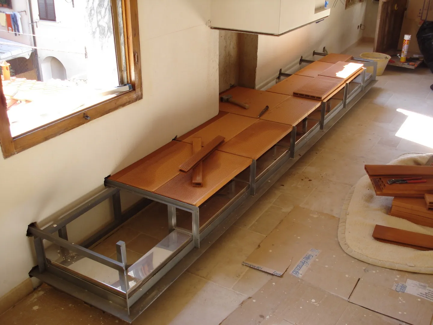 - trave di struttura della contro-cappa in metallo, realizzata in modo tale che la struttura stessa avesse delle feritoie e fungesse da sistema di areazione;