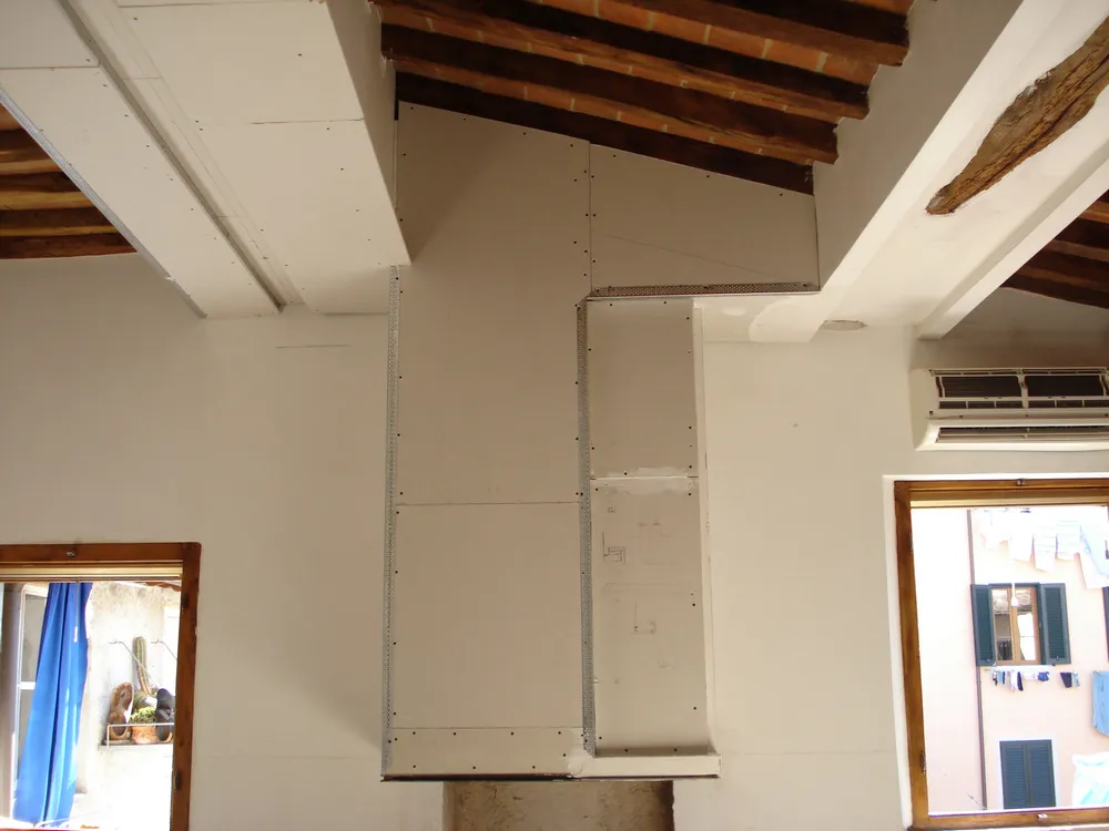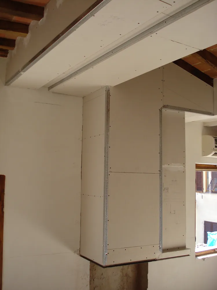 - contro-cappa in cartongesso costruita in modo tale da integrarsi con i ribassamenti adiacenti.
