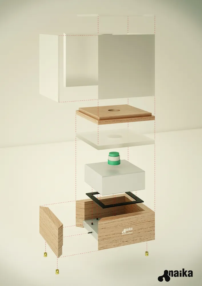 - MACCHIA in alabastrino illuminato con tecnologia backlight (che darà la forma al logo del brand "laboratorio NAIKA");