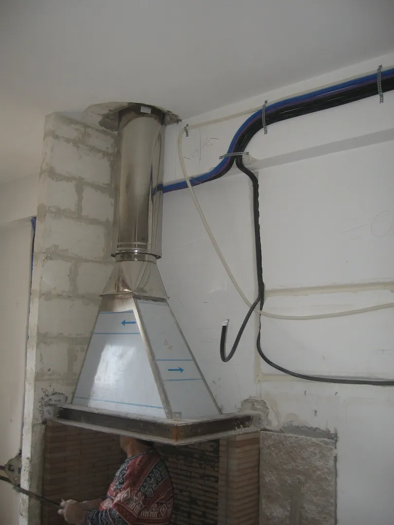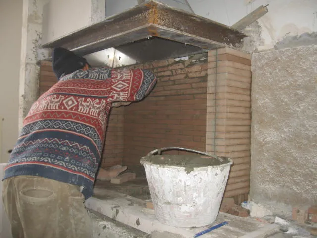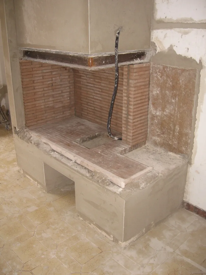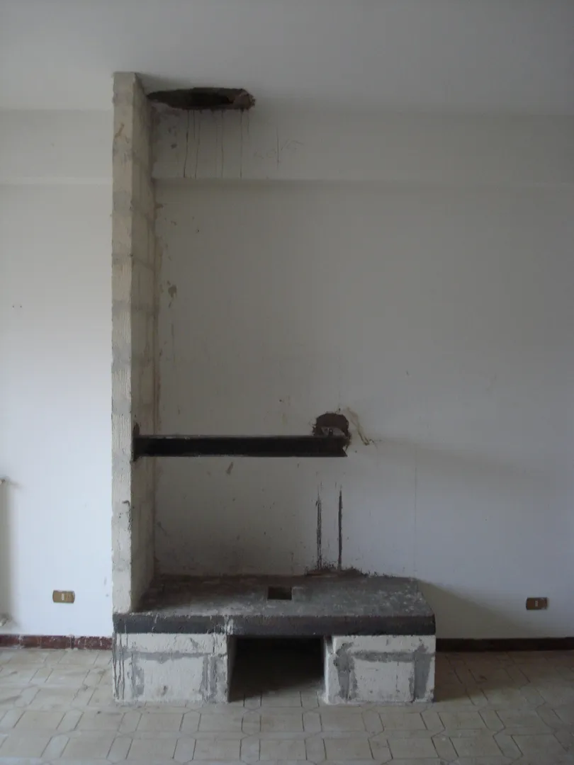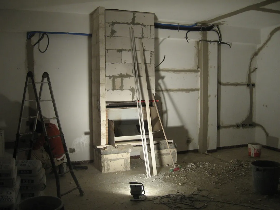 - per concludere, la creazione di un riquadro di pittura murale colore rosso carminio, che crea un'antitesi con la presenza adiacente del fuoco del camino.