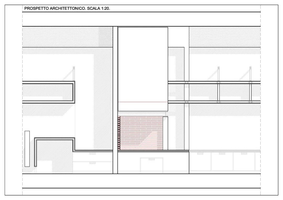 - i mattoncini in pasta rosa, la cui posa è stata seguita con molta attenzione per ottenere una pulizia formale;