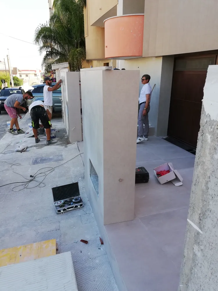 Siamo agli sgoccioli del cantiere FACCIATA MAR, il rivestimento di una facciata e del muro di recinto, con lastre in gres grande formato by Laminam. Insieme a tutto lo staff di o.key - chiavi in mano (Davide Olivieri, Michele Pignataro, Olivieri Ceramiche), abbiamo quasi completato le rifiniture di questa particolare residenza a San Marzano di S. G. (TA). Un progetto complesso, data l'articolazione delle geometrie, che ci ha indotto a studiare ogni singolo elemento del rivestimento. Ho dapprima realizzato un modello, il quale ci è servito per restituire tutti i "pezzi" che compongono il puzzle. Trattandosi di un "chiavi in mano", abbiamo studiato ogni aspetto del processo realizzativo: progetto, design, computo, trasformazione laboratoriale, logistica, movimentazione delle lastre, studio delle fasi di posa in opera, sigillature. E ora possiamo finalmente ammirare il risultato del nostro lavoro in attesa che vengano terminate le rettifiche e successive pitturazioni delle porzioni curve, trattate semplicemente a intonaco.