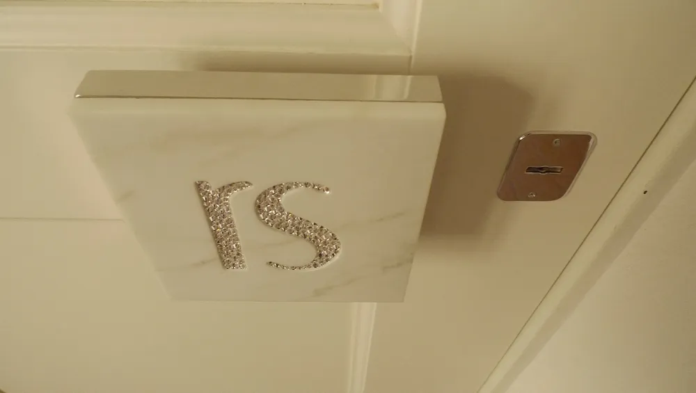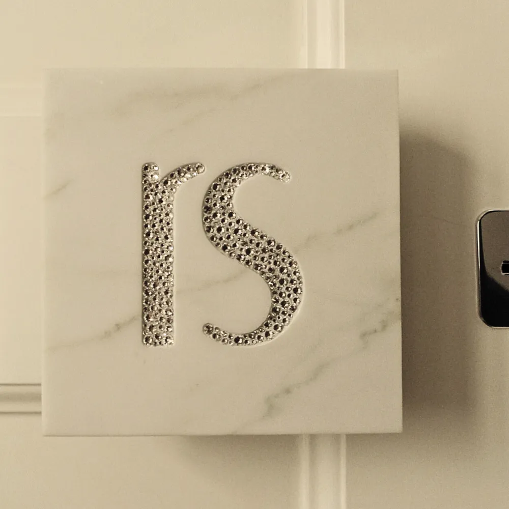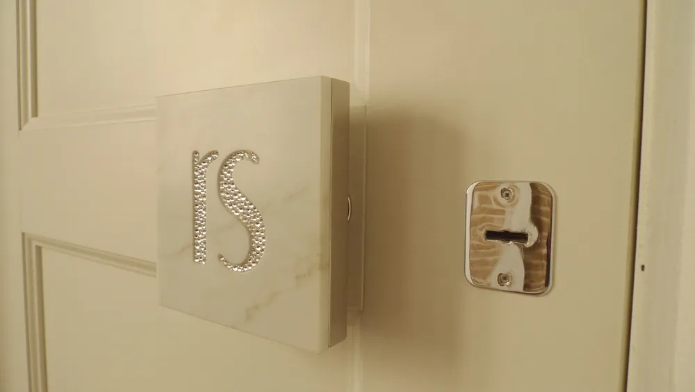 Siamo ormai agli sgoccioli dei lavori di RS.HOUSE (vedi LINK del cantiere). In questo articolo presento uno degli ultimi dettagli che ho curato: la maniglia in marmo ancorata su una struttura in acciaio AISI 316, fissata a sua volta sul portone blindato, e adeguatamente distanziata per poter infilare comodamente le dita durante l'impugnatura; la struttura in acciaio contiene una contro-cornice, utile per proteggere la costa del marmo durante l'utilizzo; sul pannello di marmo è stato realizzato un basso-rilievo, riportante le lettere iniziali del nome della proprietaria di casa, in modo da incastonare originali pietre swarovski che impreziosiscono l'oggetto e lo rendono unico nel suo genere.