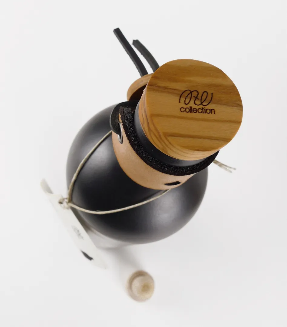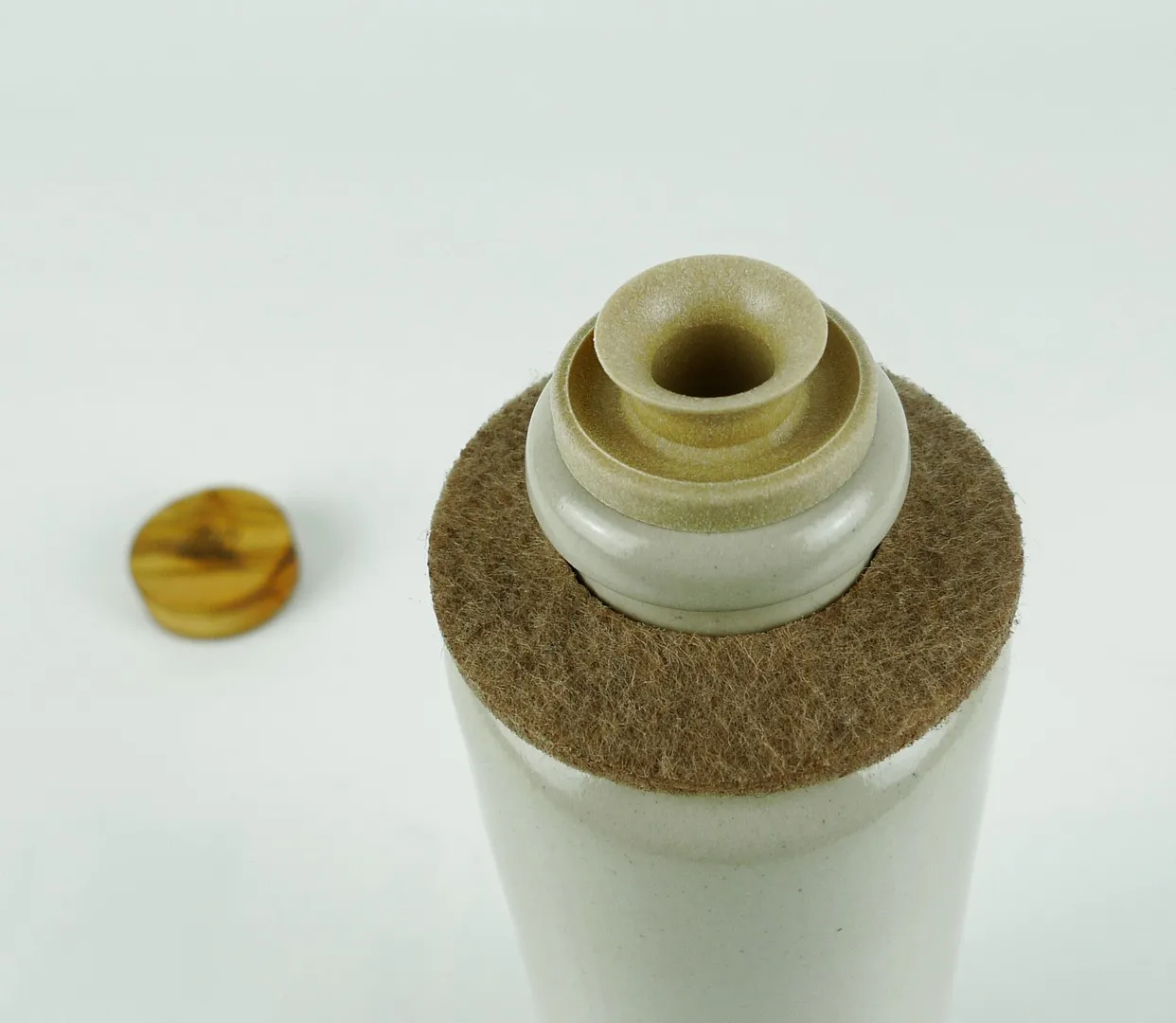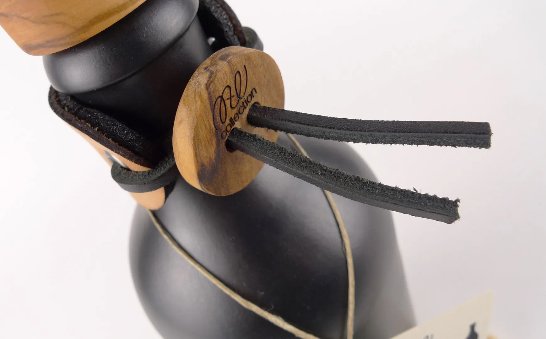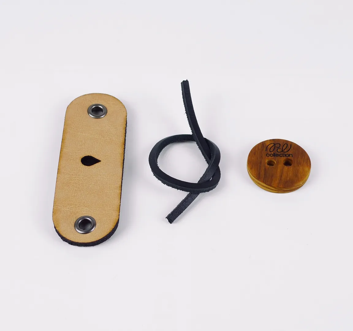 “FELTHO” è un salva-goccia, in accoppiato feltro + cuoio, facile da applicare su qualsiasi collo di bottiglia (anche sul collo della tipica “bordolese” da vino) e utile per assorbire anche l’ultima antipatica gocciolina. È dotato di laccetti, anch’essi in cuoio, passanti in una simpatica fibbia in legno d’ulivo che funge da serra-nodo e si può acquistare anche senza la mascherina in cuoio, per un utilizzo più easy.