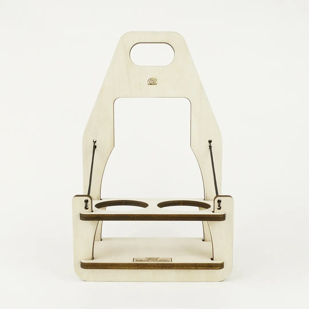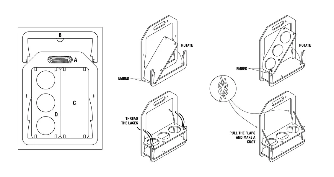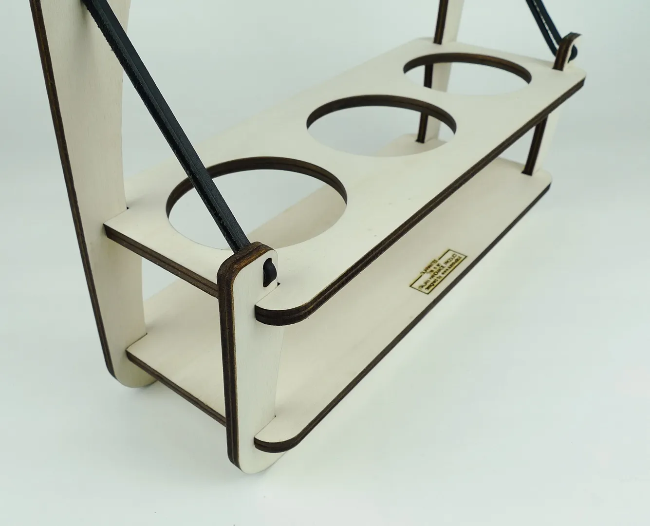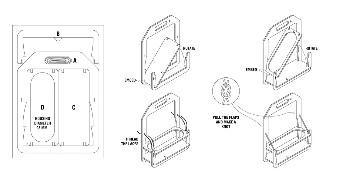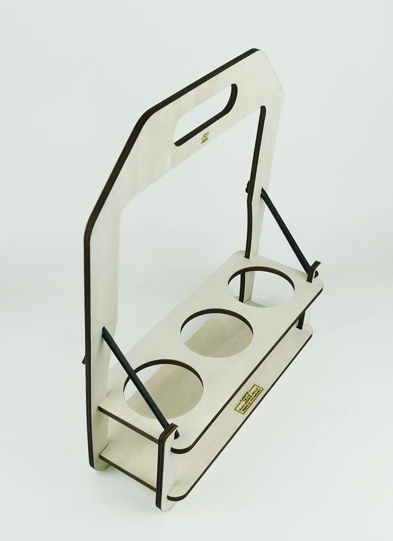 Quando ho ideato "SUITKA" ho pensato a tutte le occasioni in cui mi sono trovato a dover regalare 3 buone bottiglie di vino, senza sapere come poterle presentare, se non con la solita scatola di cartone che una volta aperta è pressoché inutilizzabile. Così nasce questo progetto, dall'esigenza appunto di voler trovare un sistema carino, efficiente, comunque a basso costo, per trasportare al sicuro delle bottiglie. "SUITKA" è una suitcase per trasportare, grazie al suo comodo manico, elementi cilindrici: quindi bottiglie, piccoli vasi oppure riviste arrotolate; ma proprio grazie alla feritoia del manico, "SUITKA" può anche essere appesa a parete diventando un porta-oggetti funzionale non solo per un utilizzo temporaneo come "trasportino". Così come "SKERU", anche "SUITKA" è stata disegnata sfruttando al massimo la dimensione originaria del materiale multistrato di betulla spessore 6 mm. Infatti anche in questo caso non vi è alcun spreco di materiale, se consideriamo che anche la sagoma del pannello restante dal taglio a laser, una volta incollata nel packaging, garantisce una trasportabilità impeccabile dell'oggetto, diventandone l'alloggiamento. Anche "SUITKA" è un oggetto montabile fai-da-te incastrando i vari pezzi che lo compongono e tenendoli insieme grazie a dei laccetti in cuoio in dotazione anch'essi all'interno della scatola.