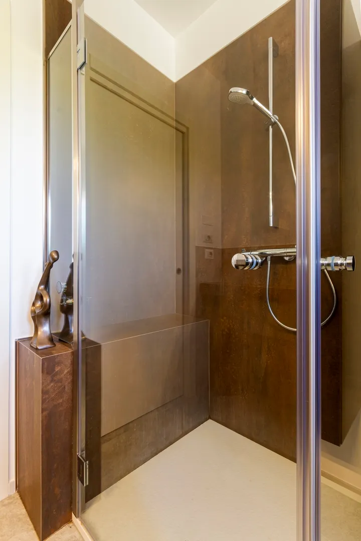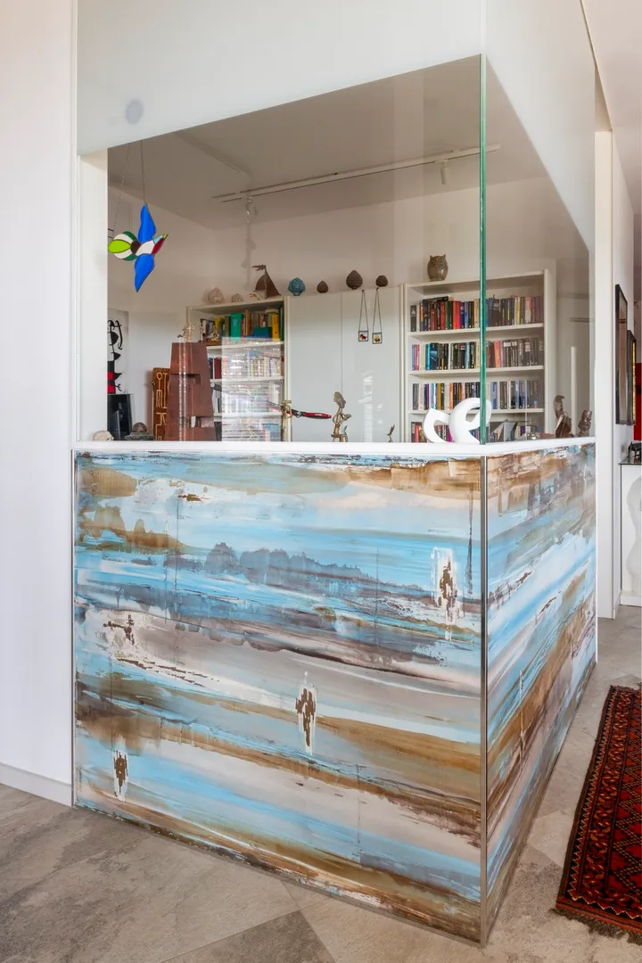 BC HOUSE è una villa situata a San Pietro in Bevagna (TA). Anne, la proprietaria di origine svizzera, è un’artista molto nota nel campo della pittura e della scultura; lei aveva necessità di completare alcune zone della sua abitazione, rimaste incomplete. Così si è affidata al team O.KEY - chiavi in mano, nel quale rivesto il ruolo di progettista per i grandi formati slim in gres porcellanato. Le esigenze della cliente comprendevano le seguenti realizzazioni: