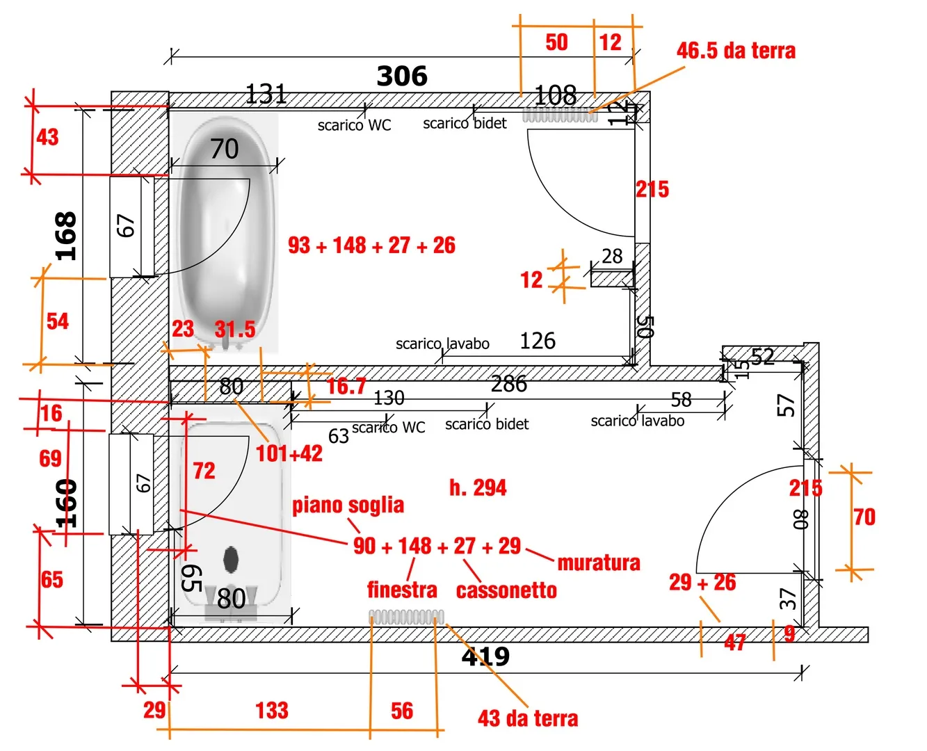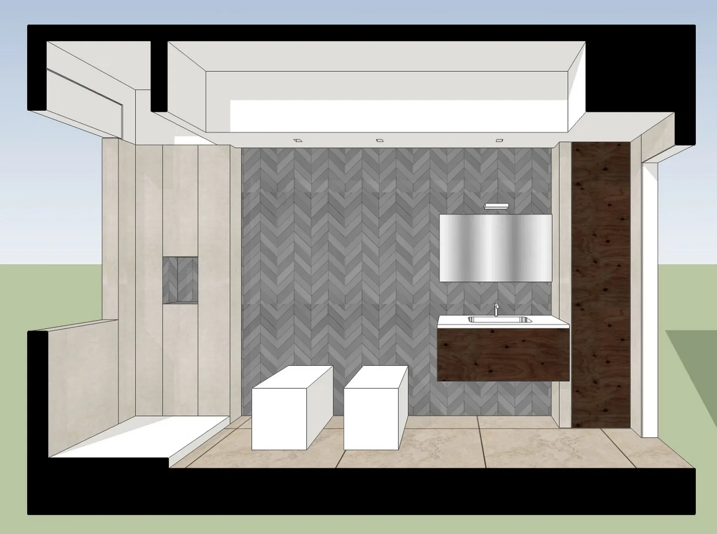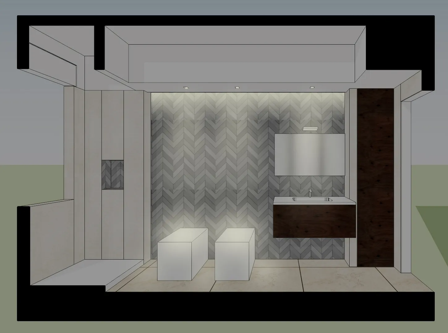 Di seguito le immagini dei modelli preliminari dei 2 bagni.