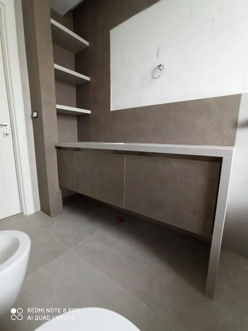 I progetti dei 2 bagni (uno con doccia e uno con vasca) sono stati ideati in modo da sfruttare al massimo le piccole metrature disponibili, costituendo quasi delle micro-architetture, in cui i volumi, le superfici, i ribassamenti e le linee di luce, definiscono lo spazio in modo rigoroso, senza equivoci.