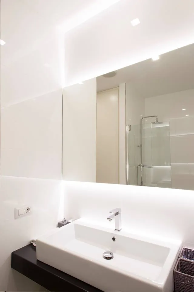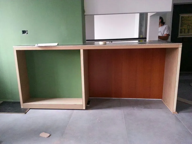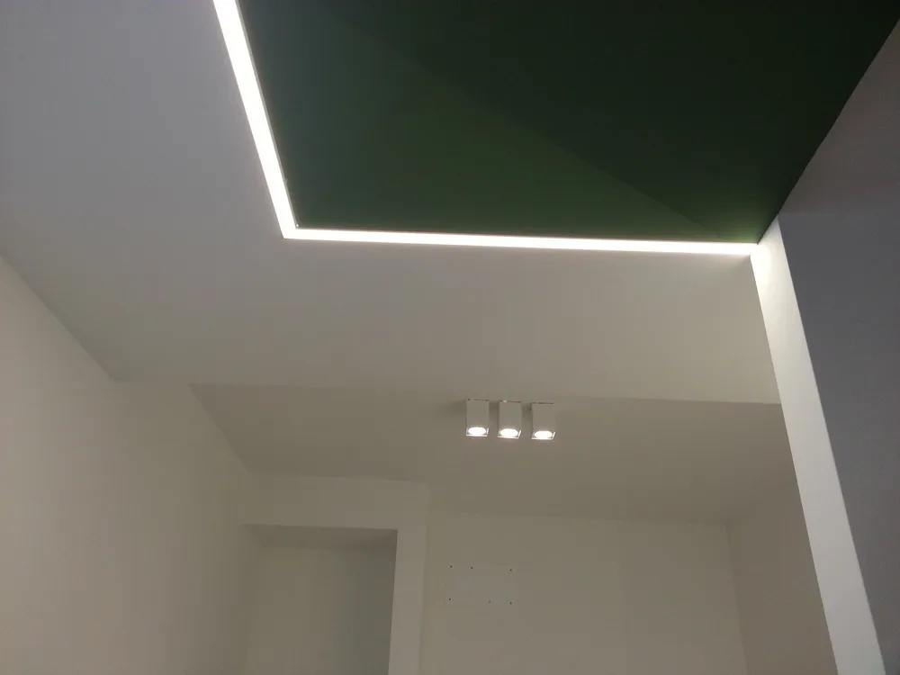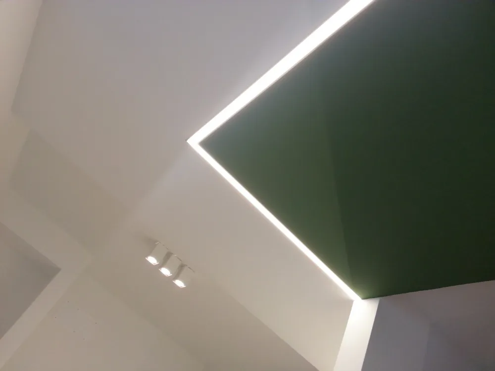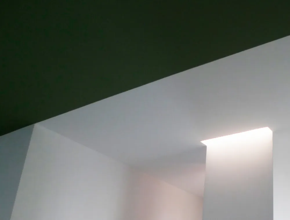 Per completare la fase impiantistica, è stato infine realizzato l'elemento più distintivo del progetto: la linea di luce che incornicia la “lingua verde”. Si tratta di un profilo in alluminio con diffusore opale, incassato e complanare , attraversato da una striscia LED ad alta luminosità, capace di valorizzare e rafforzare il segno architettonico di questo elemento. Nelle immagini si intravedono già anche i primi arredi integrati, installati all’interno degli spazi da me progettati, che iniziano a definire con maggiore chiarezza l’identità complessiva dell’intervento.