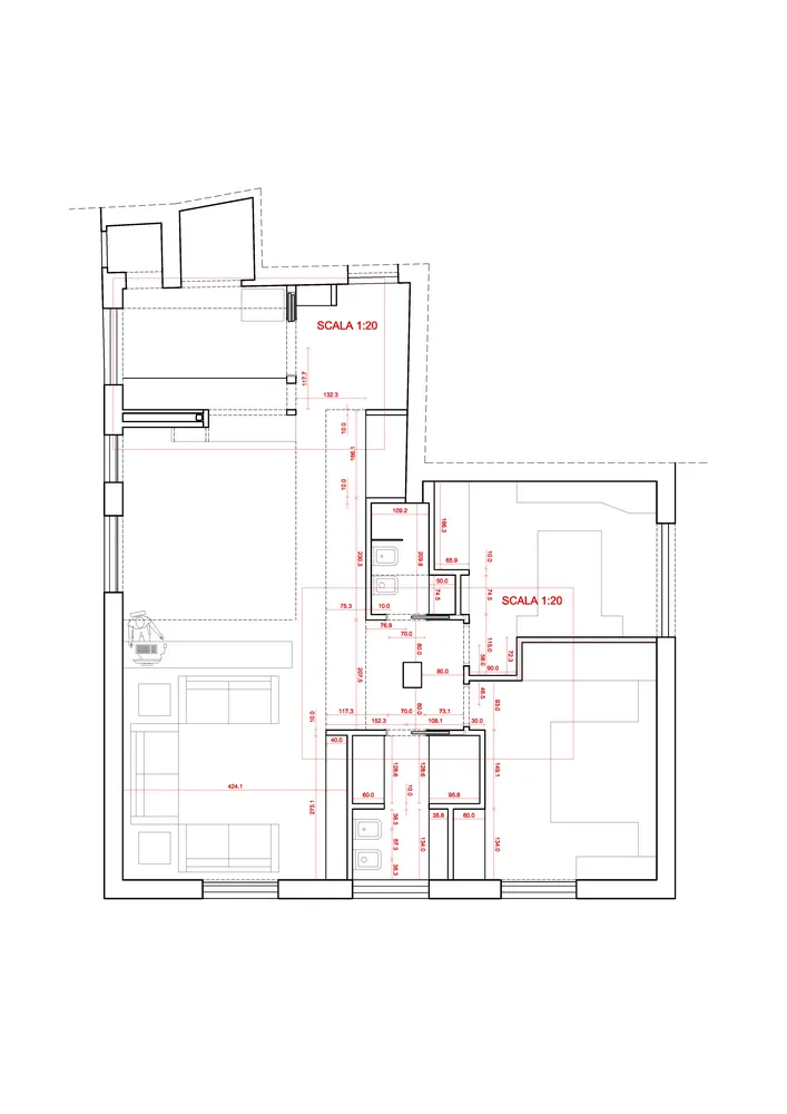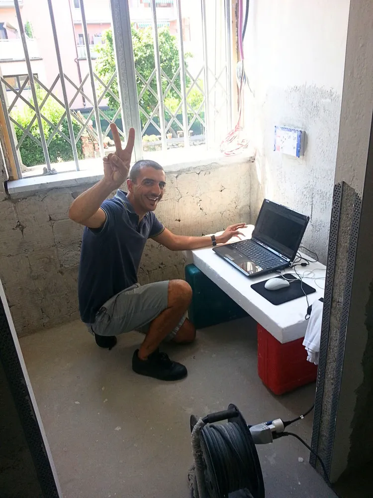 Durante le lavorazioni di muratura ho dovuto prestare particolare attenzione alla definizione dei fili fissi di cantiere, trattandosi di un progetto in cui anche la posa della muratura richiedeva una precisione millimetrica. Per gestire al meglio questa fase, ho spesso ricreato un piccolo “angolo ufficio” direttamente in cantiere, così da poter verificare in tempo reale che l’avanzamento dei lavori fosse perfettamente coerente con quanto previsto dal progetto. Già dopo aver completato intonaci e massetti, le forme del progetto sono ben visibili.