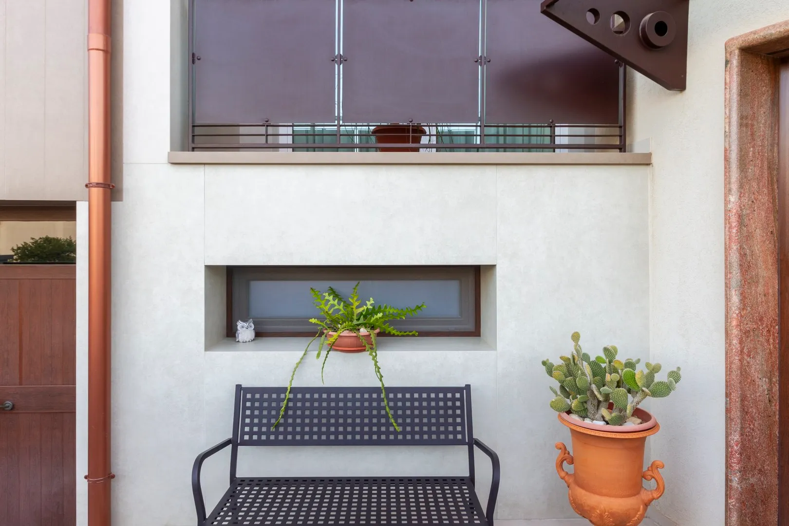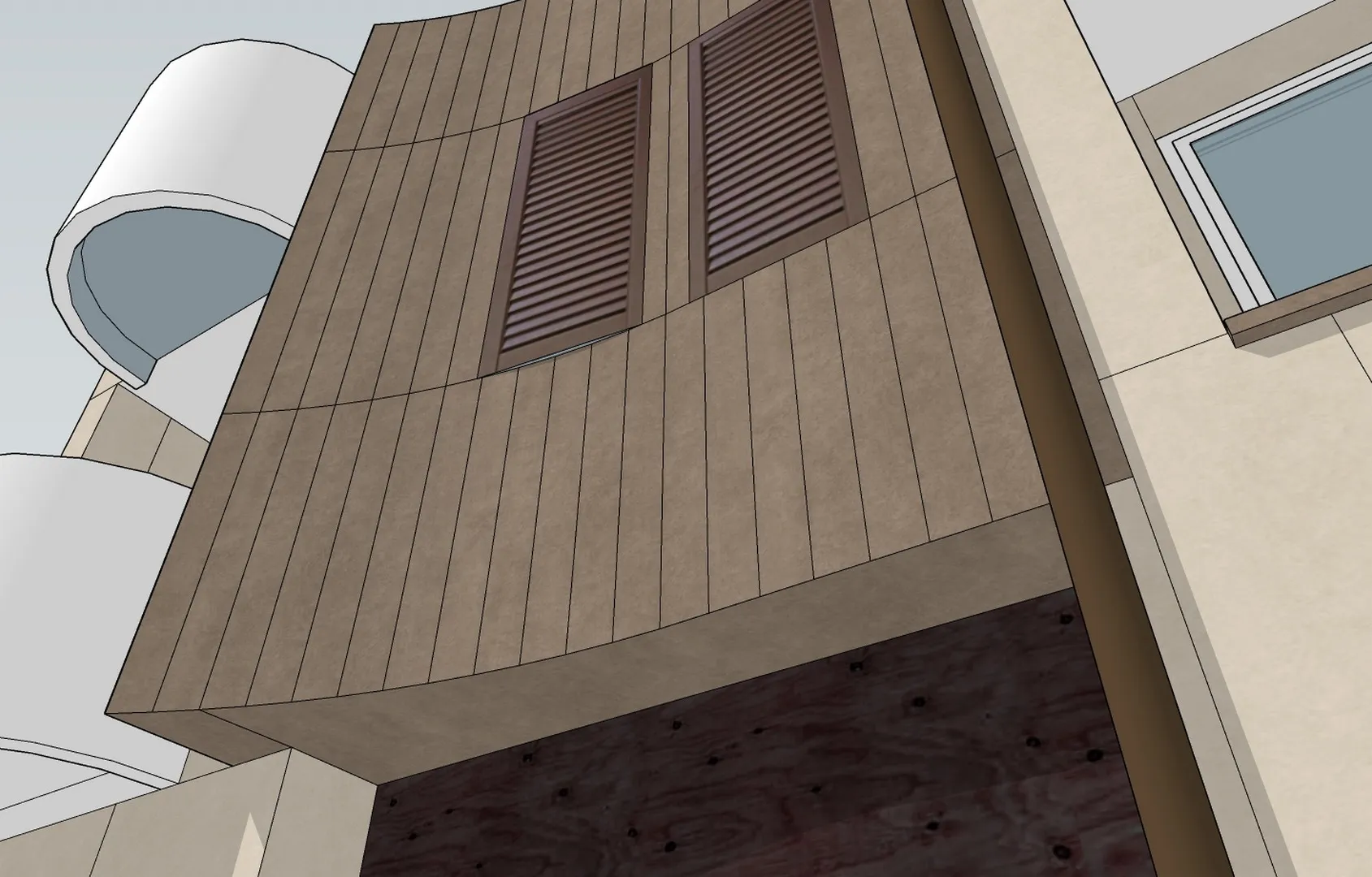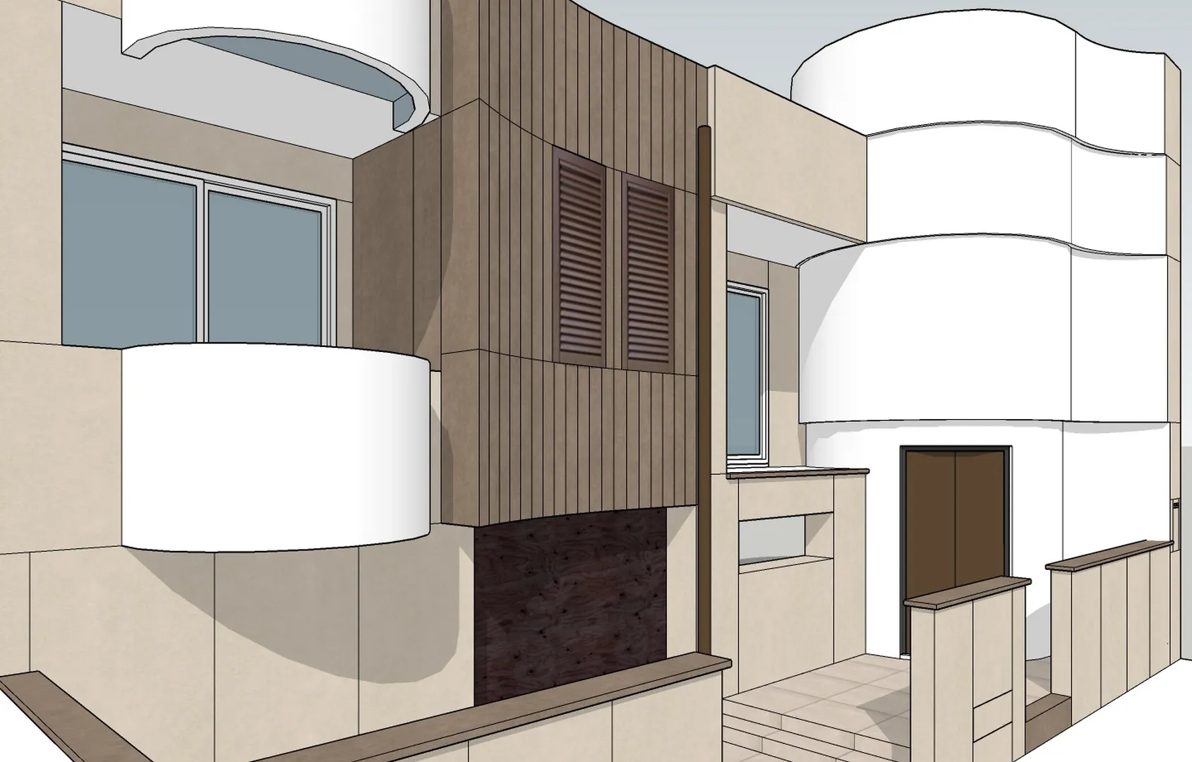 FACCIATA MAR è uno dei primi progetti condotti in collaborazione con o.key, la divisione di Olivieri Ceramiche (Avetrana - TA) che si occupa di contract e "chiavi in mano". Il tema del progetto affrontato è il seguente: "Come rivestire una facciata con il gres porcellanato slim grande formato?". Un obiettivo complesso da raggiungere, trattandosi di un prospetto con una morfologia articolata, costituito da superfici curvilinee oppure leggermente spanciate in una condizione di deterioramento piuttosto importante. La creazione del modello è stata fondamentale per distinguere le porzioni in cui effettuare la rimozione del vecchio rivestimento in pietra e per individuare le regioni che sarebbero state rivestite con gres oppure trattate semplicemente con normale intonaco da esterni. Con il supporto del team o.key, ho sviluppato il rivestimento in gres (calibrato a doghe) anche nella porzione centrale spanciata, ideata con fasce in gres, scelta fortemente voluta dal cliente per conferire alla facciata un accento di “innovazione”.