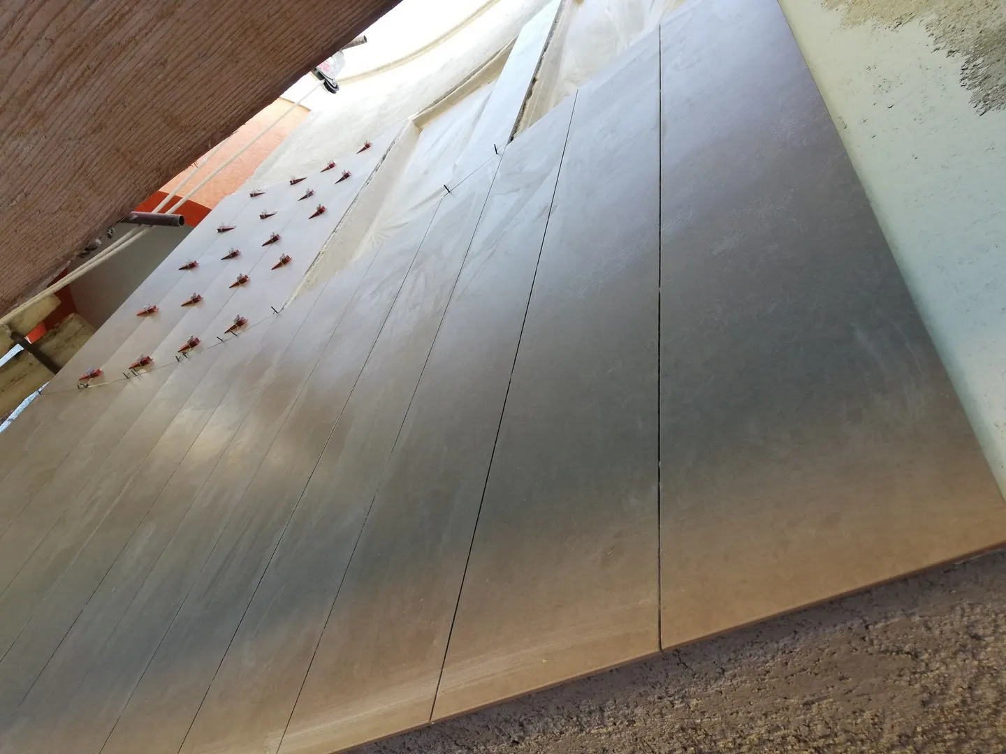 A seguire invece alcune immagini del cantiere, in cui si può comprendere bene quanta attenzione bisogna prestare quando si progetta con il grande formato, anche nello sviluppo del materiale per non avere eccessivi e ingiustificati sprechi. Cliccando su questo LINK, è possibile scoprire altri dettagli della fase di completamento di questa straordinaria opera.
