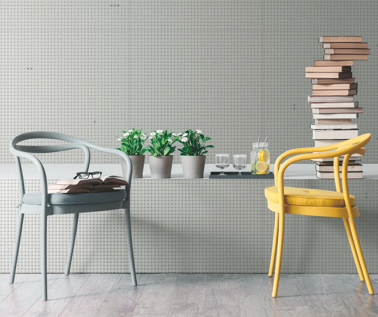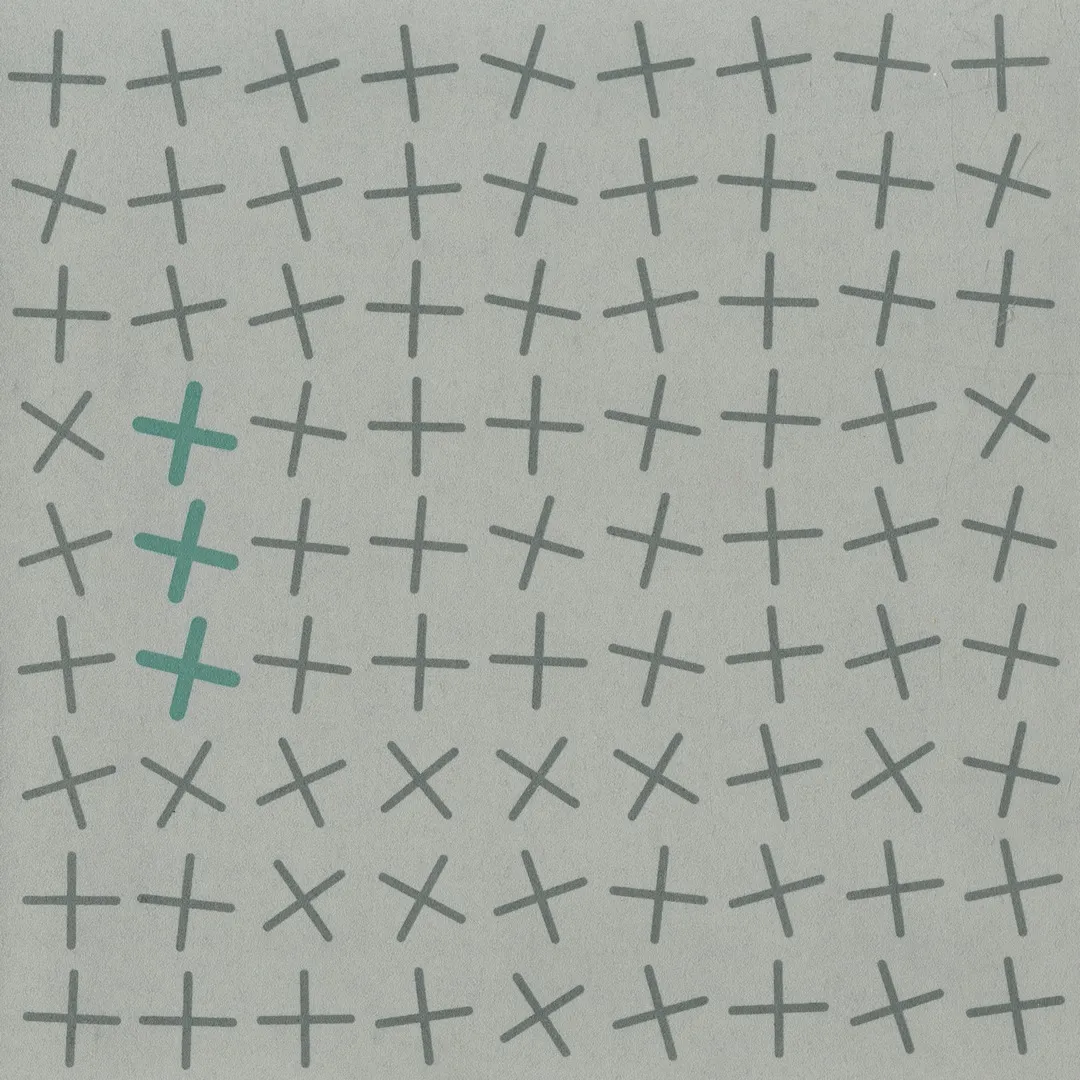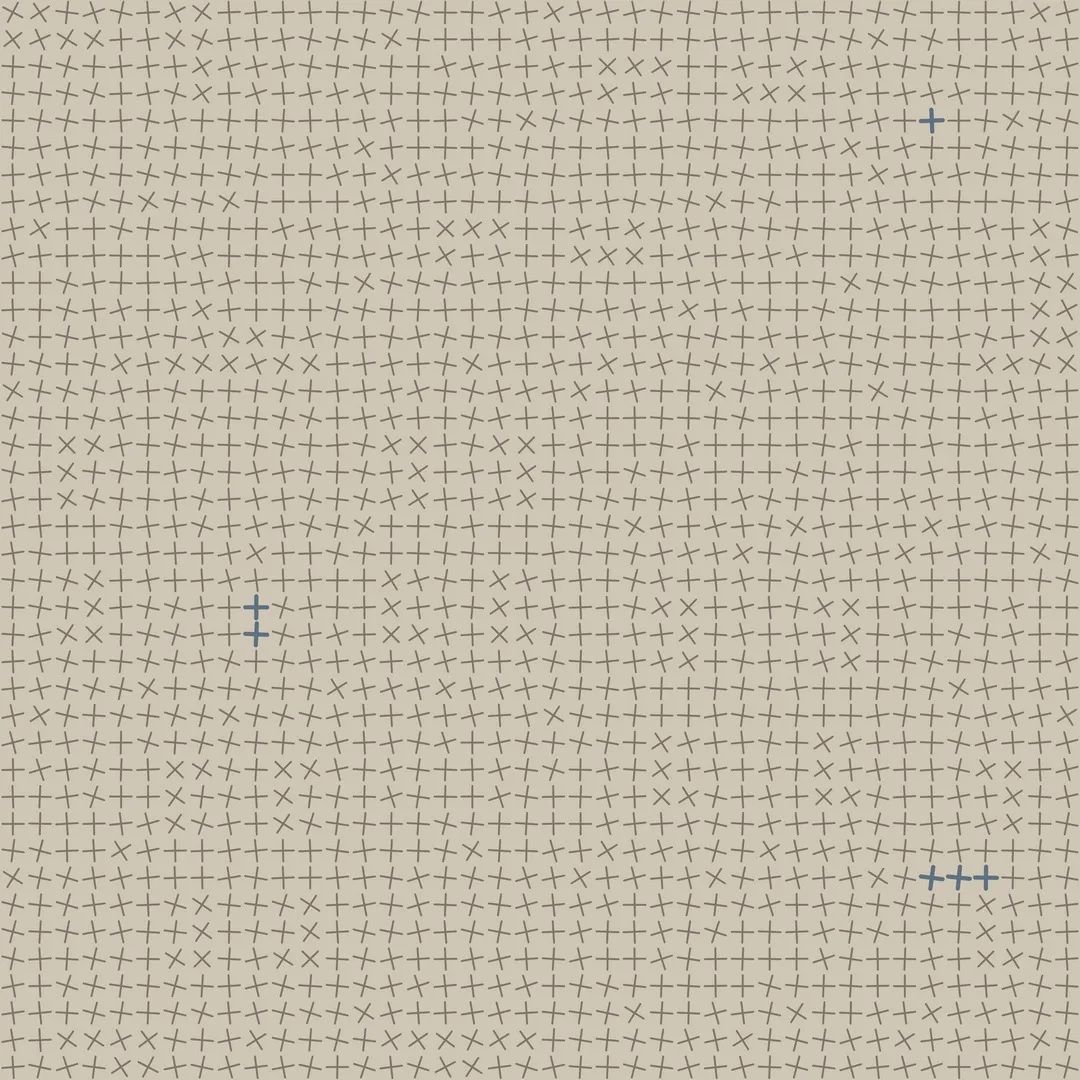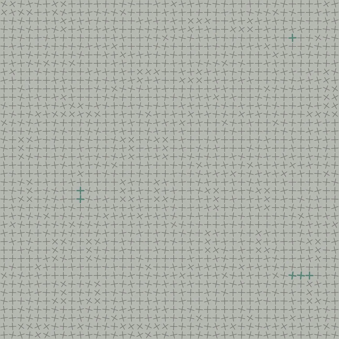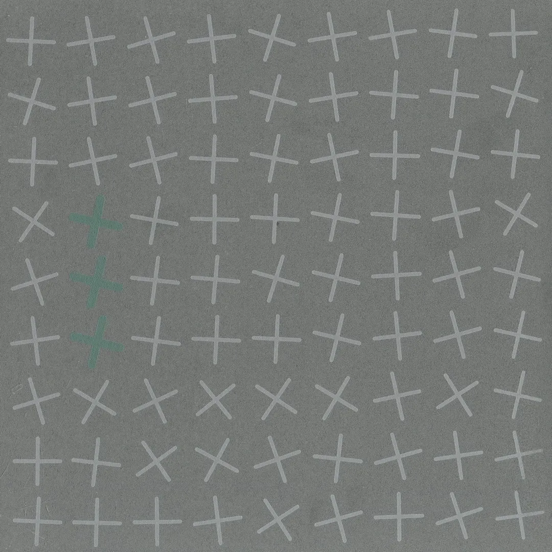 Il concept OPLUS+ rappresenta una maglia regolare di segni che definiscono, nel loro insieme, una texture “a mosaico”. La semantica che compone la texture è originata “in negativo” dalla ri-definizione delle fughe tradizionalmente presenti tra le tessere di un mosaico e sintetizzata in un “array capriccioso” di segni “+”. Infatti seppur la griglia si presenti regolare, i singoli segni che la compongono sono ruotati rispetto al loro centro con angoli differenti, come se l’intera composizione avesse subito un “flicker”. In alcuni, pochissimi casi, i segni “+” sono evidenziati con una colorazione in contrasto, quasi a determinare una costellazione di piccoli punti di riferimento che conferiscono all’intera texture un pizzico di vivacità.