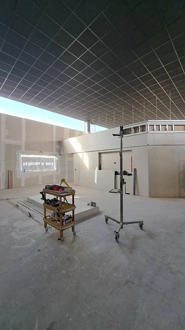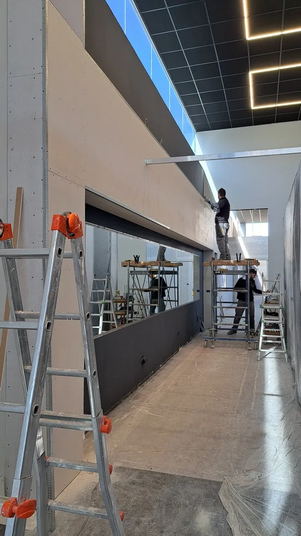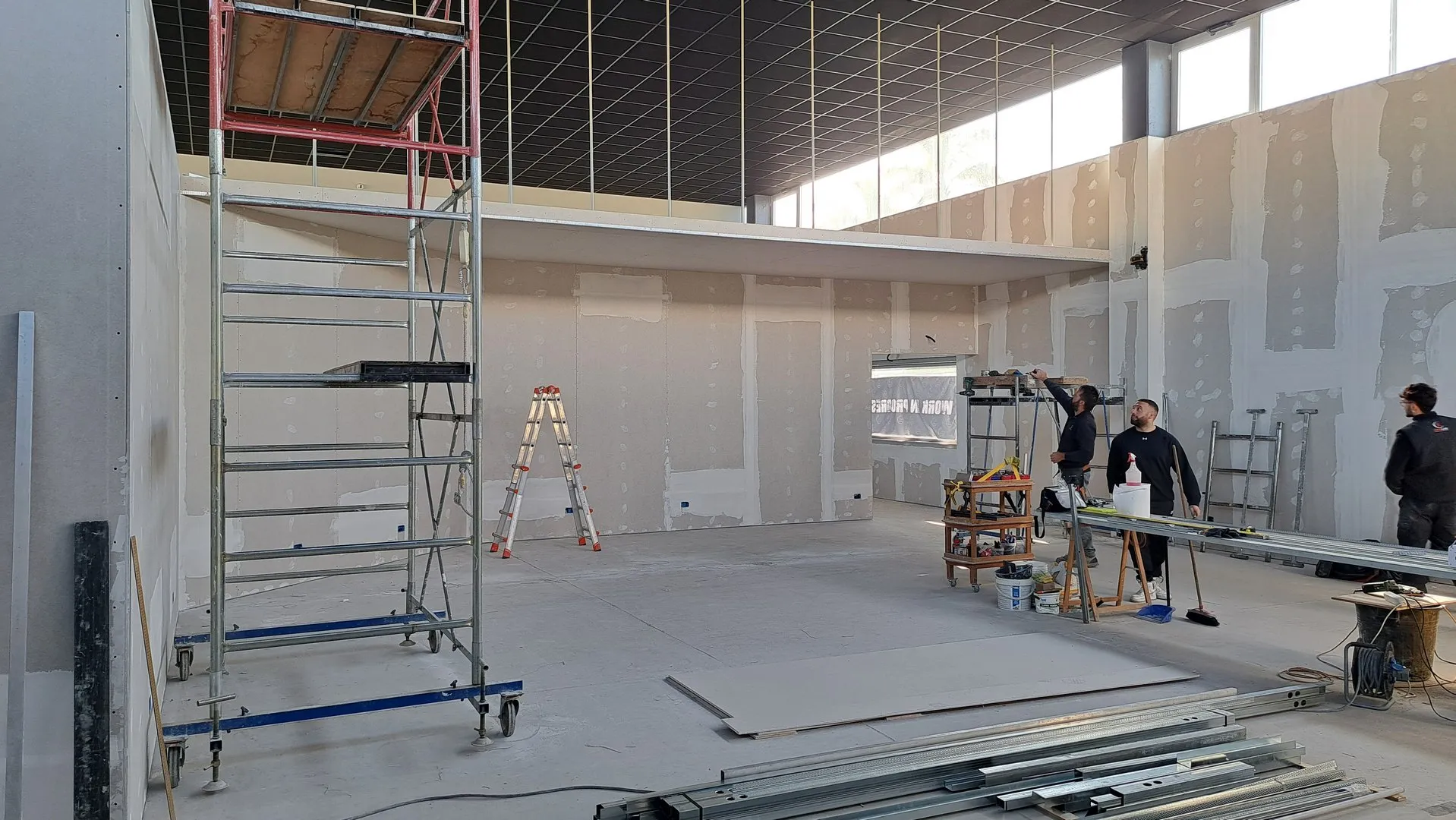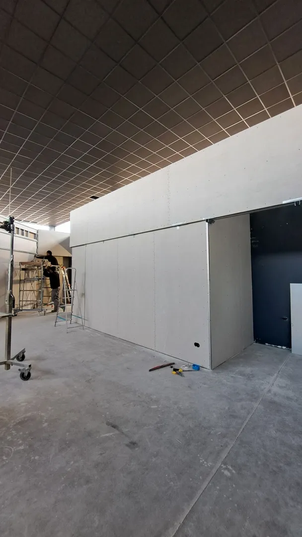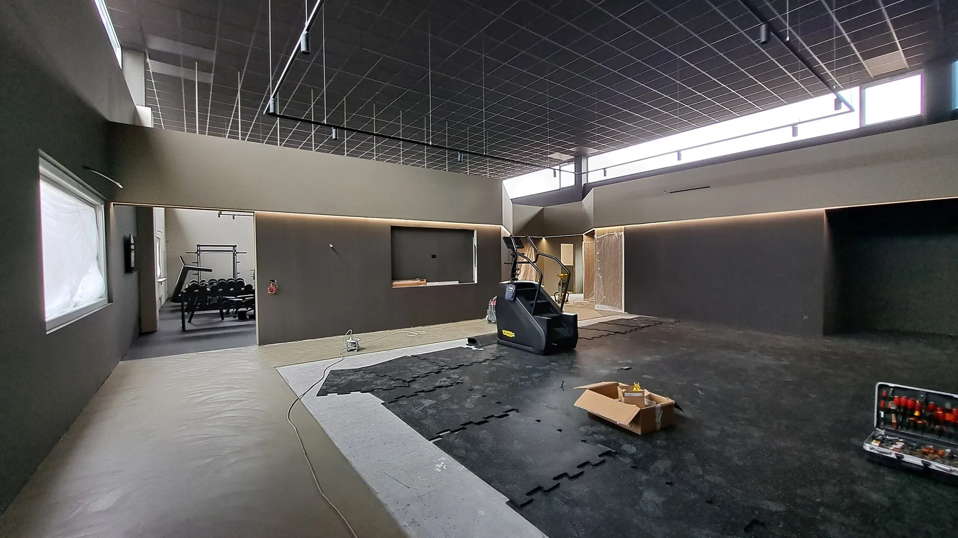 A seguire, tutte le fasi della realizzazione, da cui si può evincere quanta attenzione e cura è stata prestata nella direzione di questo cantiere, dalla prima posa delle pendinature del controsoffitto fono-assorbente, sino al posizionamento di tutte le attrezzature ginniche.
