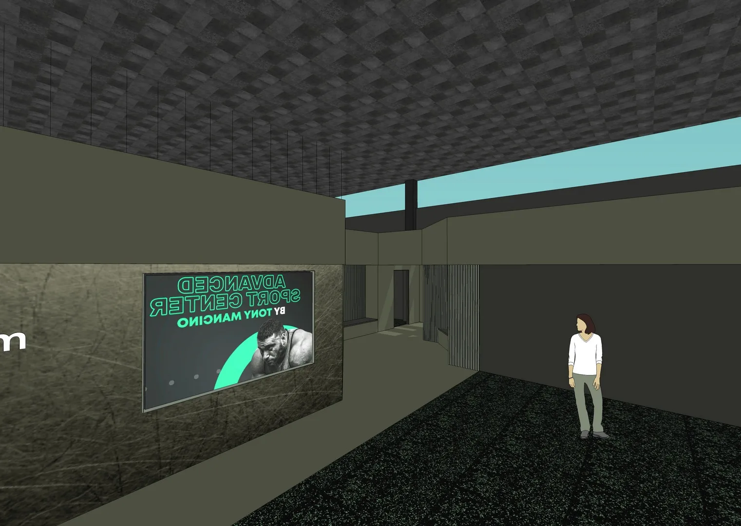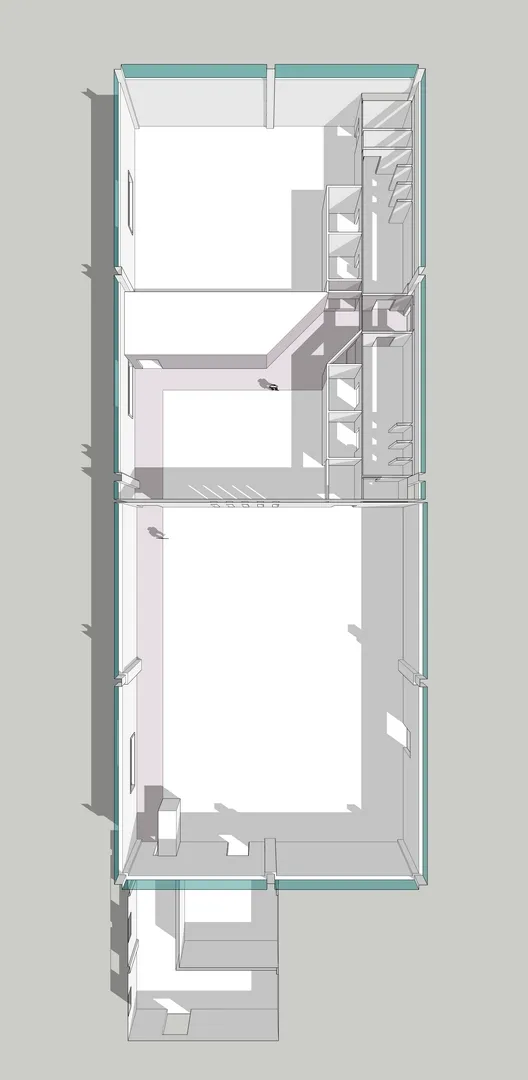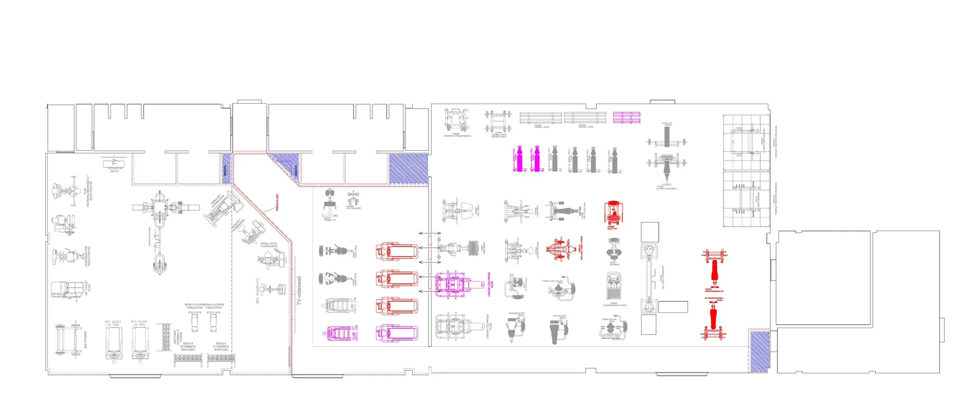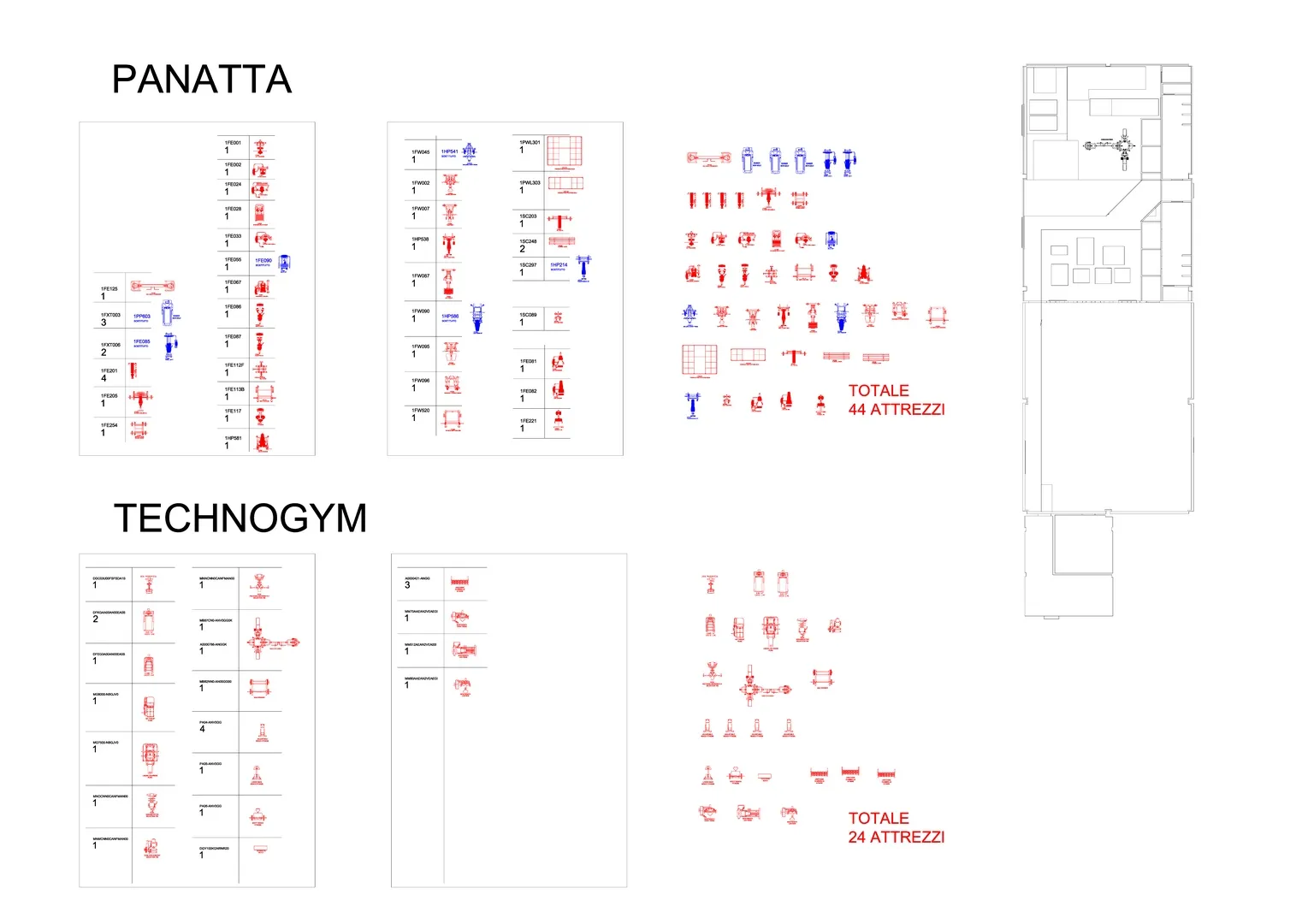 Il progetto architettonico prende forma dalle funzioni e dalla esatta disposizione di tutte le attrezzature ginniche volute da Tony, da me analizzate una ad una, dimensionate e collocate nella planimetria insieme ai rispettivi percorsi di viabilità e usabilità di ciascuna macchina.