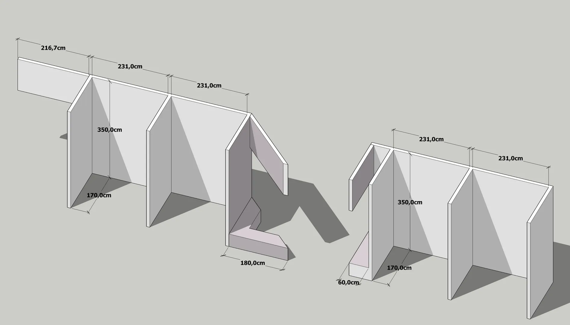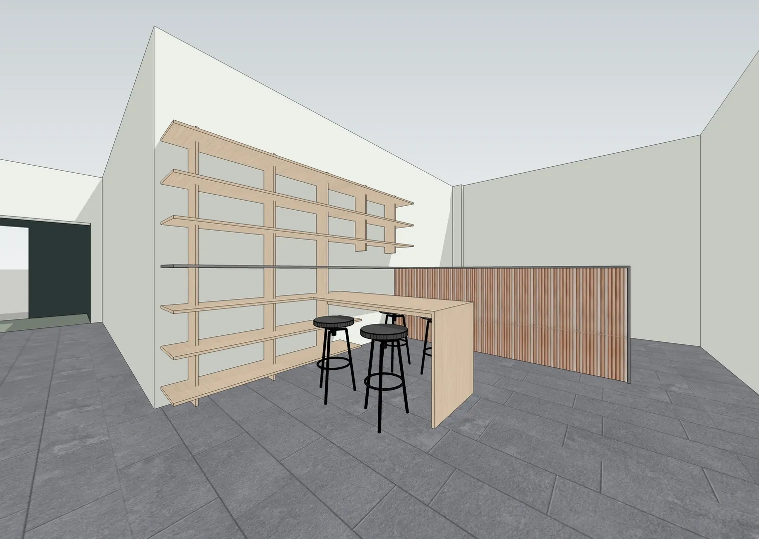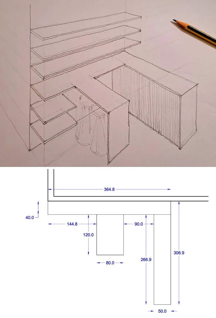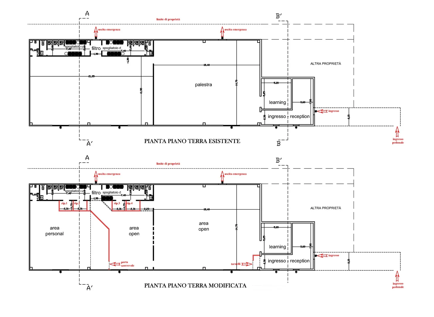 Il progetto architettonico prende forma dalle funzioni e dalla esatta disposizione di tutte le attrezzature ginniche volute da Tony, da me analizzate una ad una, dimensionate e collocate nella planimetria insieme ai rispettivi percorsi di viabilità e usabilità di ciascuna macchina.