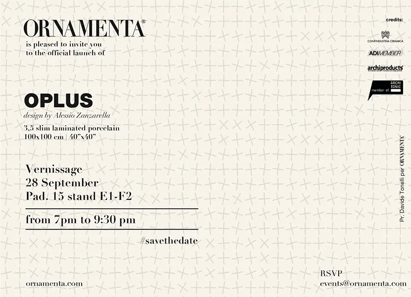 Tra le foto alcuni scatti effettuati nello stand Ornamenta® all'interno della fiera Cersaie e gli inviti agli eventi tenuti durante i giorni della fiera.
