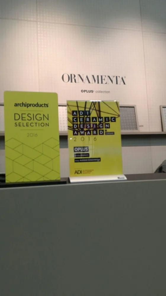 E non finisce qui, come diceva Corrado Mantoni alla fine di ogni puntata della Ruota della Fortuna. Ebbene sì, OPLUS+, la decorazione che ho disegnato per Ornamenta® e che mi ha permesso di vincere al 1° posto il concorso ILOVEXXL (vedi LINK) indetto da Centro Edile Quartarella, dopo la pubblicazione su LIVING del Corriere della Sera (vedi LINK), e dopo la produzione delle prime campionature (vedi LINK), è stata finalmente esposta in fiera a Cersaie 2016. Qui OPLUS+ è stata premiata con l'ADI CERAMIC DESIGN AWARD 2016, riconoscimento che ogni anno viene conferito alle più prestigiose collezioni in gres porcellanato. Sono stupito da tutto ciò e forse non me lo sarei mai aspettato. Devo ringraziare di cuore Renè Quartarella, promotrice del concorso ILOVEXXL, e Davide Tonelli, patron di Ornamenta®, perché è grazie a loro che oggi posso gioire di questa stupenda notizia.