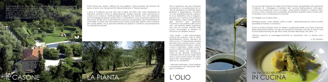 IO OLIO! è un'associazione fondata da Andrea Beck, proprietaria del resort CASONE1729 a Massarosa (LU), una comunità di artisti di varia nazionalità e in generale amanti dell'olio non solo come alimento, ma come stile di vita. L'architetto Zanzarella ha di recente elaborato il logo istituzionale, la comunicazione e ha progettato 2 pannelli luminosi da apporre sulle colonne in pietra situate in corrispondenza del meraviglioso spazio piscina, dove normalmente vengono tenuti i convegni. I 2 pannelli si illuminano con sistema backlight, facendo risaltare la geometria lineare, elemento caratterizzante della composizione grafica del logo.