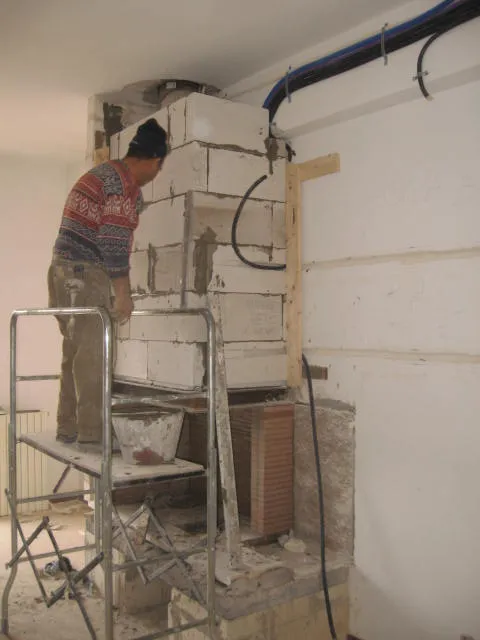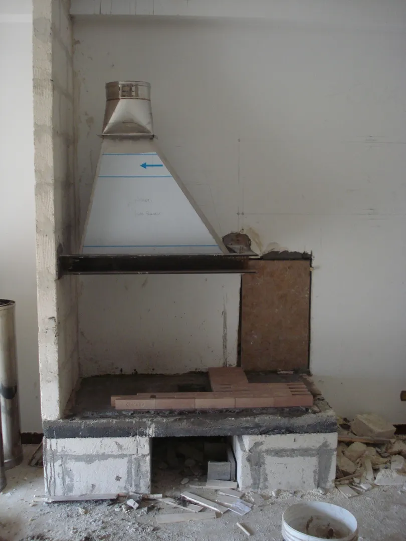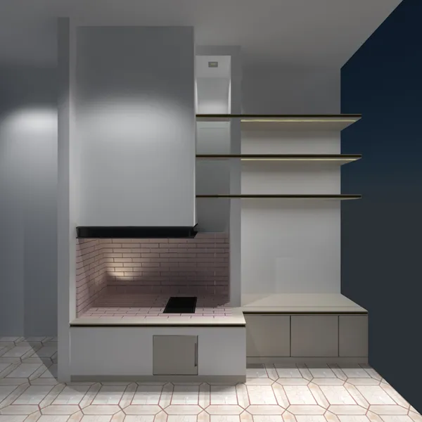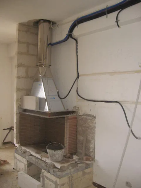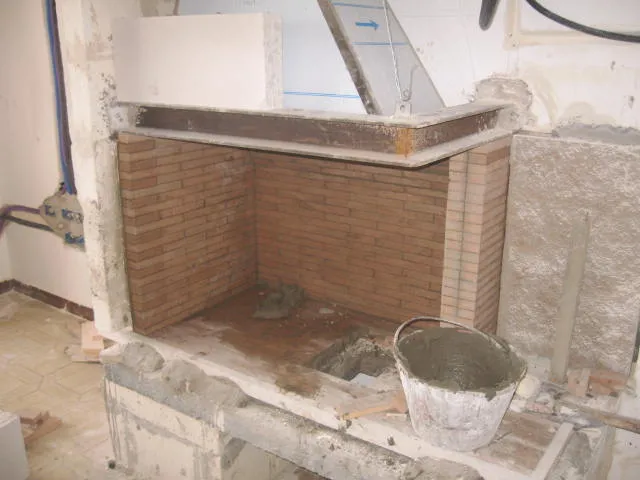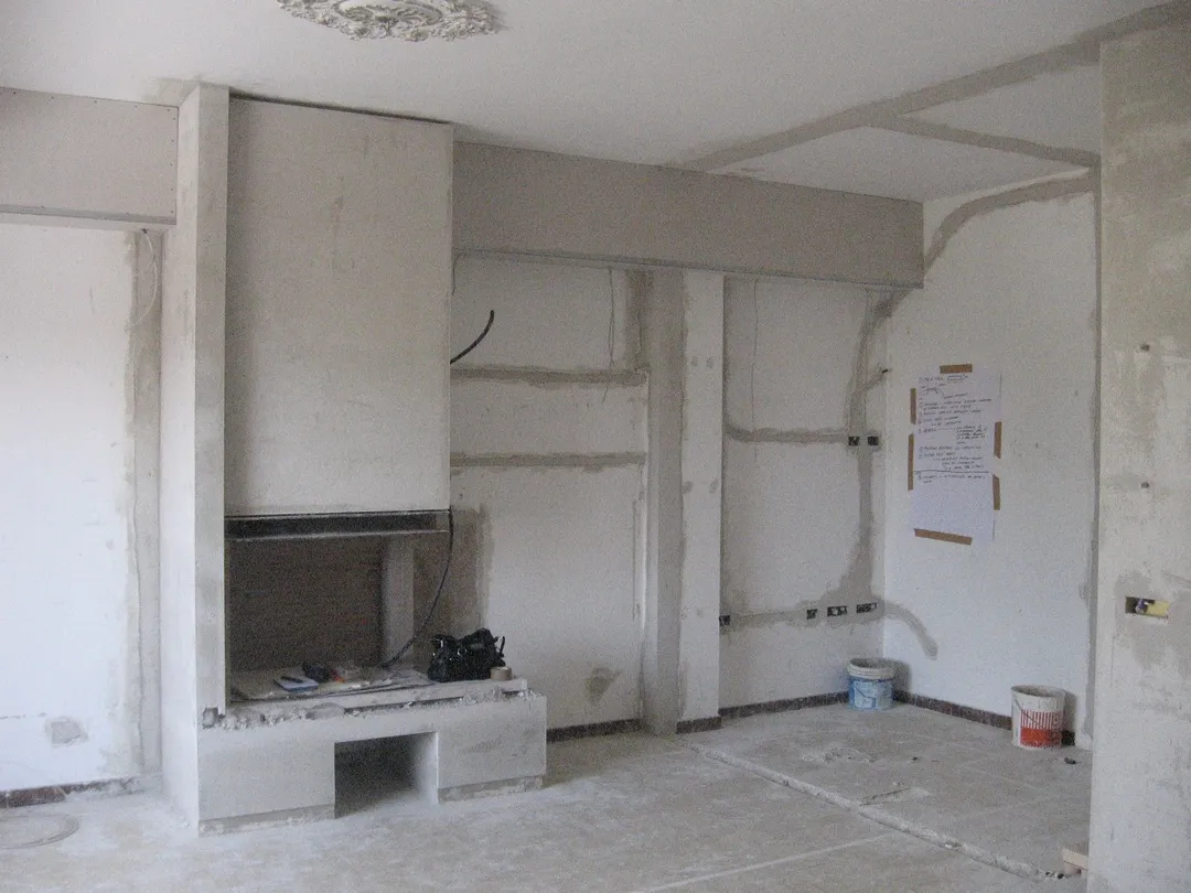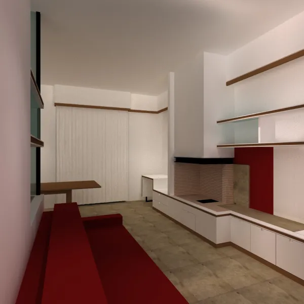 - per concludere, la creazione di un riquadro di pittura murale colore rosso carminio, che crea un'antitesi con la presenza adiacente del fuoco del camino.