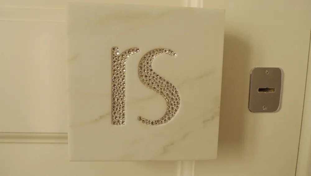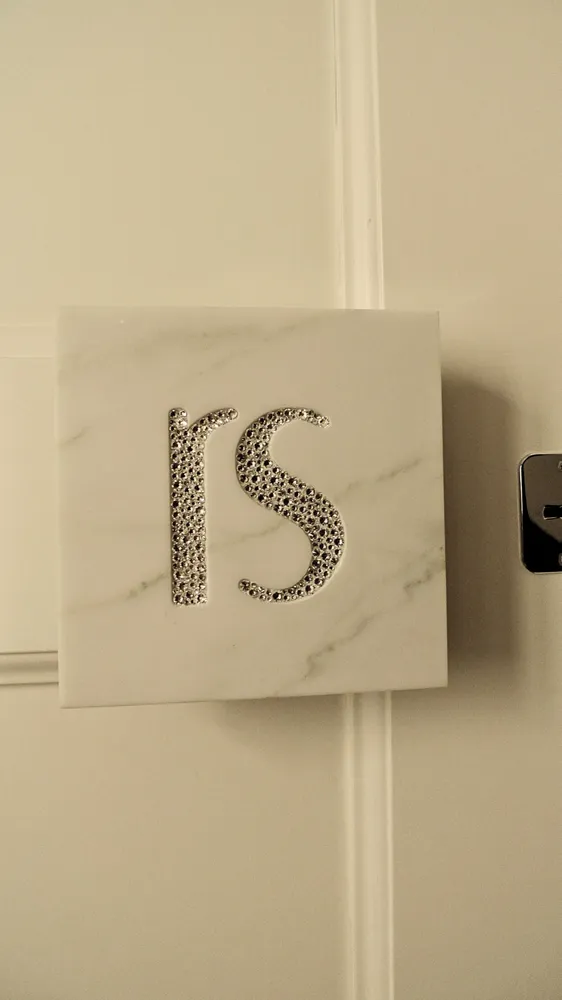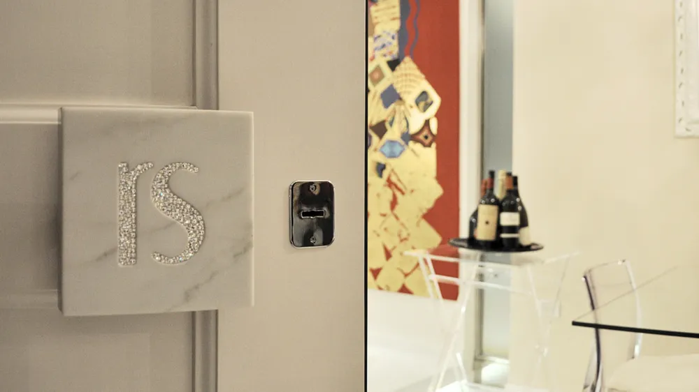 Siamo ormai agli sgoccioli dei lavori di RS.HOUSE (vedi LINK del cantiere). In questo articolo presento uno degli ultimi dettagli che ho curato: la maniglia in marmo ancorata su una struttura in acciaio AISI 316, fissata a sua volta sul portone blindato, e adeguatamente distanziata per poter infilare comodamente le dita durante l'impugnatura; la struttura in acciaio contiene una contro-cornice, utile per proteggere la costa del marmo durante l'utilizzo; sul pannello di marmo è stato realizzato un basso-rilievo, riportante le lettere iniziali del nome della proprietaria di casa, in modo da incastonare originali pietre swarovski che impreziosiscono l'oggetto e lo rendono unico nel suo genere.