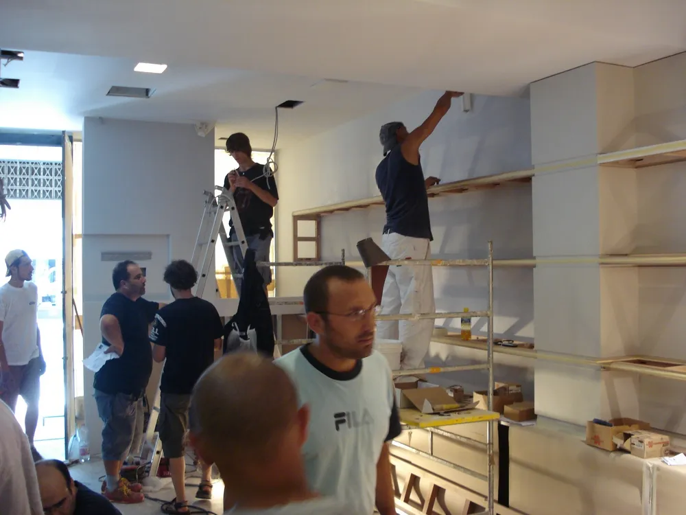 Mi ha davvero colpito l'operosità delle squadre di artigiani che in appena 3 settimane hanno costruito tutti gli arredi del nuovo temporary e per questo meritano tutta la mia stima e ammirazione. Infatti li ho voluti immortalare in queste foto, proprio come segno di enorme gratitudine.