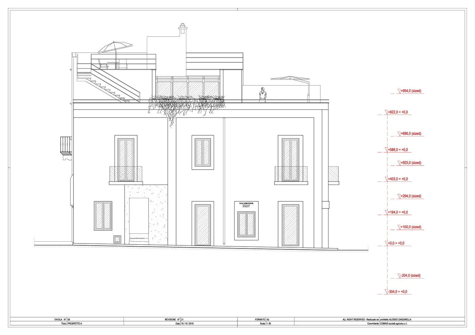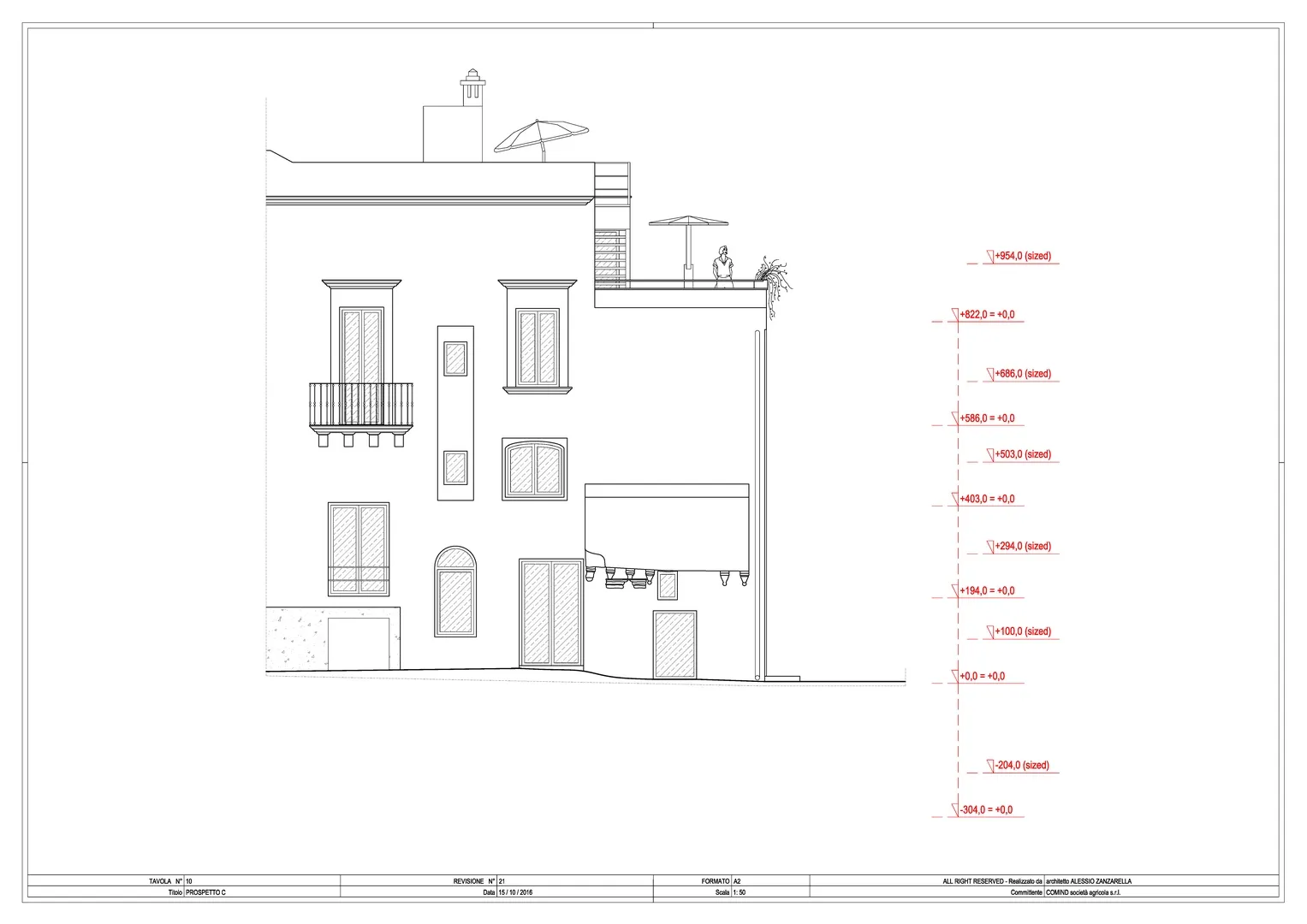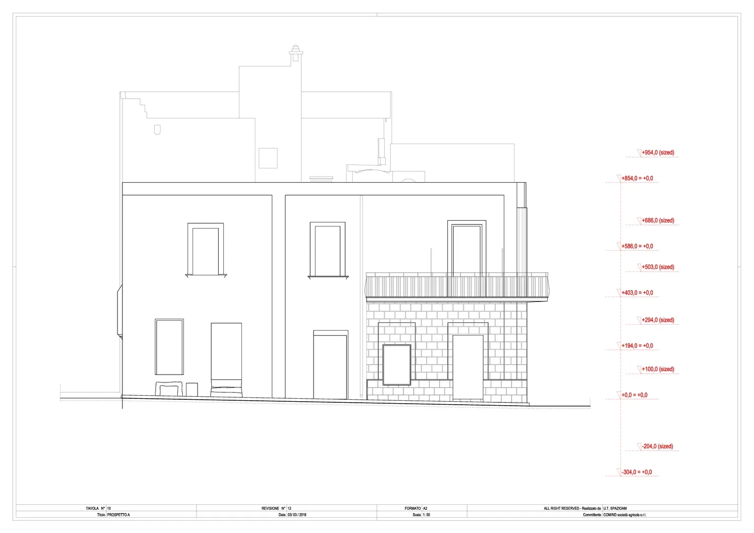 Effettuata la consegna del progetto di riqualificazione e riconversione in attività ricettiva dell'edificio storico di VIA CARROZZO, una strada prospiciente la Torre dell'Orologio (Manduria - TA). L'architetto Zanzarella in collaborazione con spazioAM ha effettuato le operazioni di rilievo, misurazione e digitalizzazione cad: un'attività piuttosto complessa trattandosi di un edificio apparentemente molto semplice all'esterno, ma notevolmente articolato all'interno, sia in pianta che in sezione. Successivamente il progetto curato interamente dall'architetto, secondo volere del committente, doveva prevedere la definizione di spazi ricettivi in alcuni casi autonomi (camere doppie o singole con relativi bagni) e condivisi (living, palestra, zona relax e solarium).