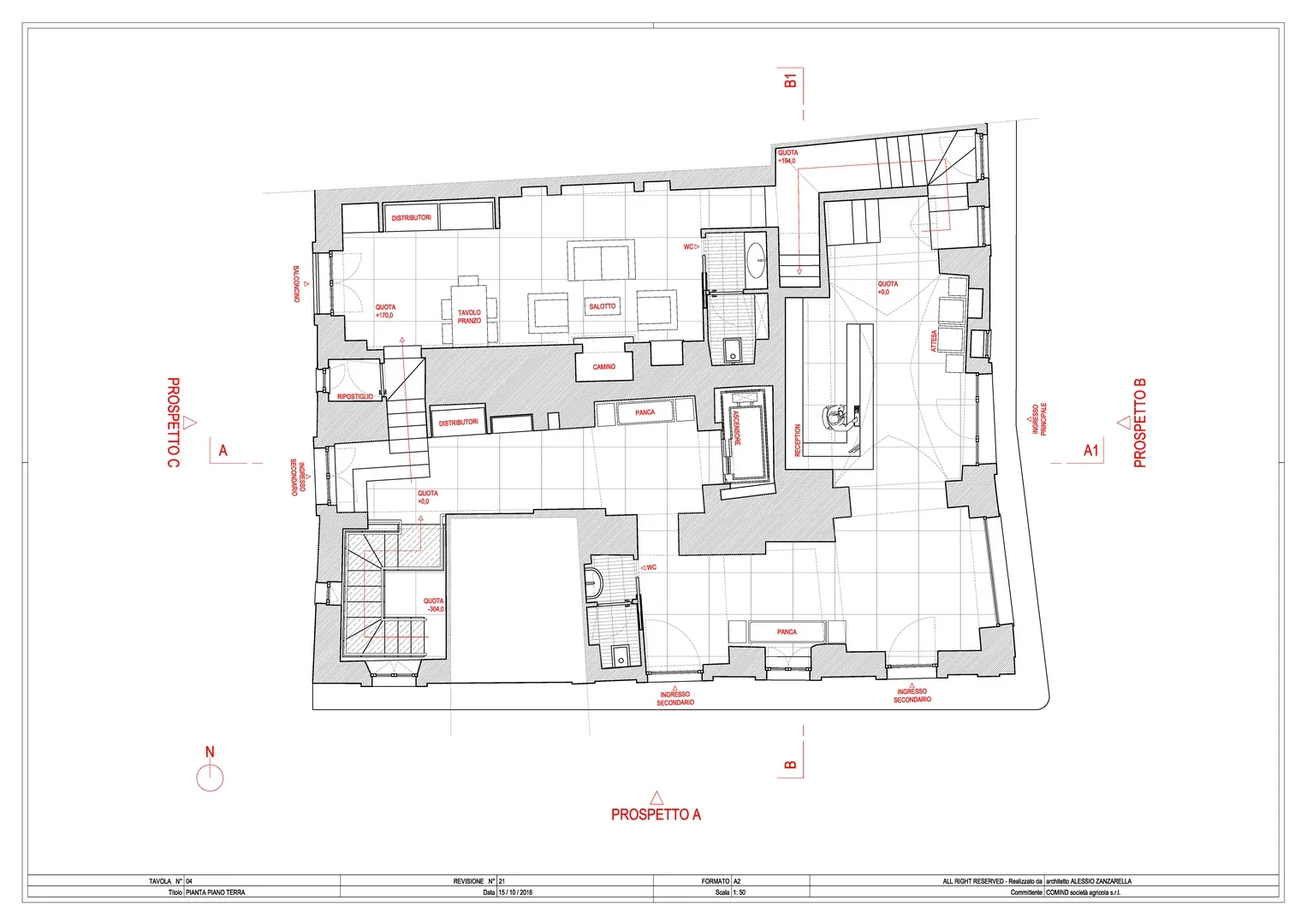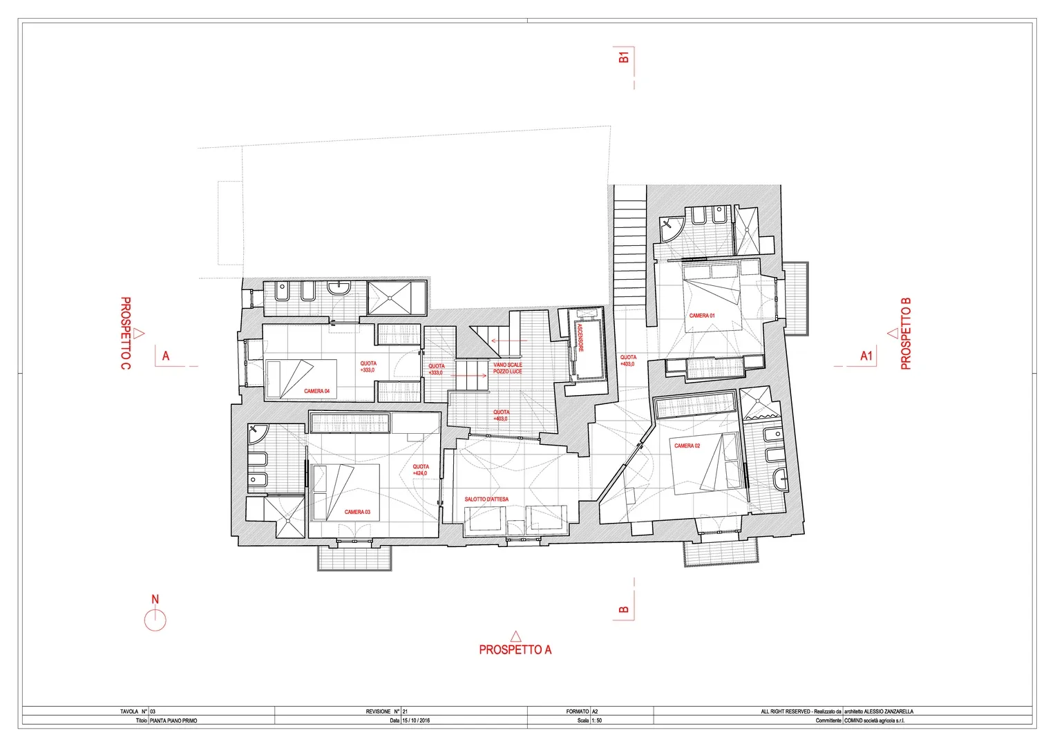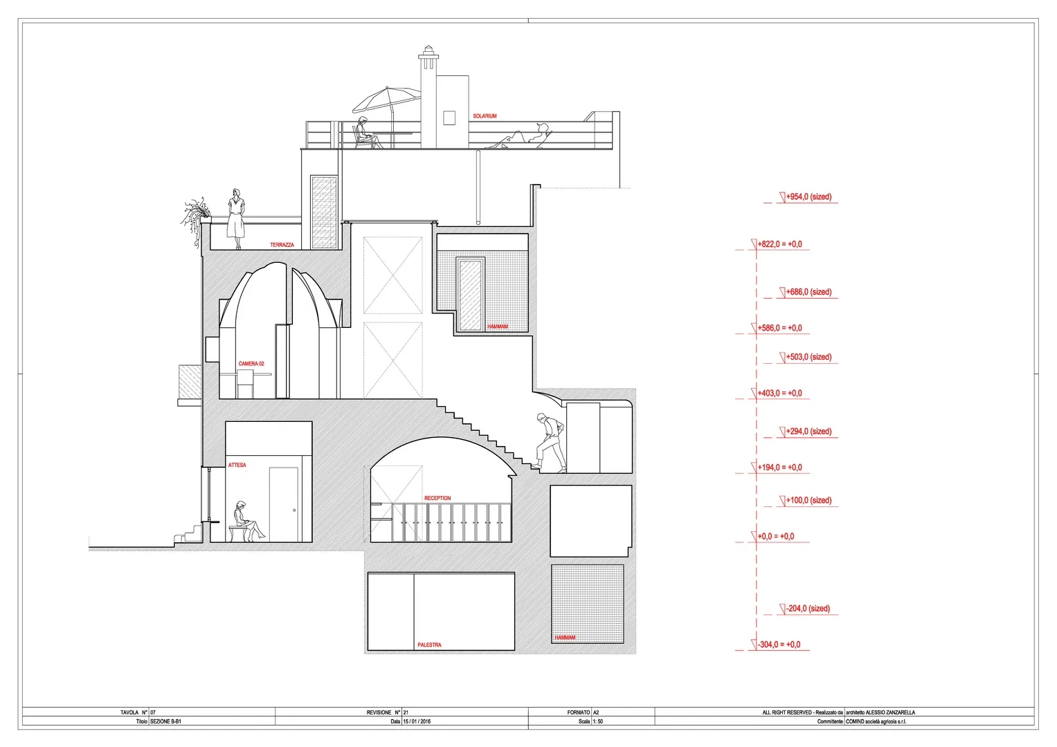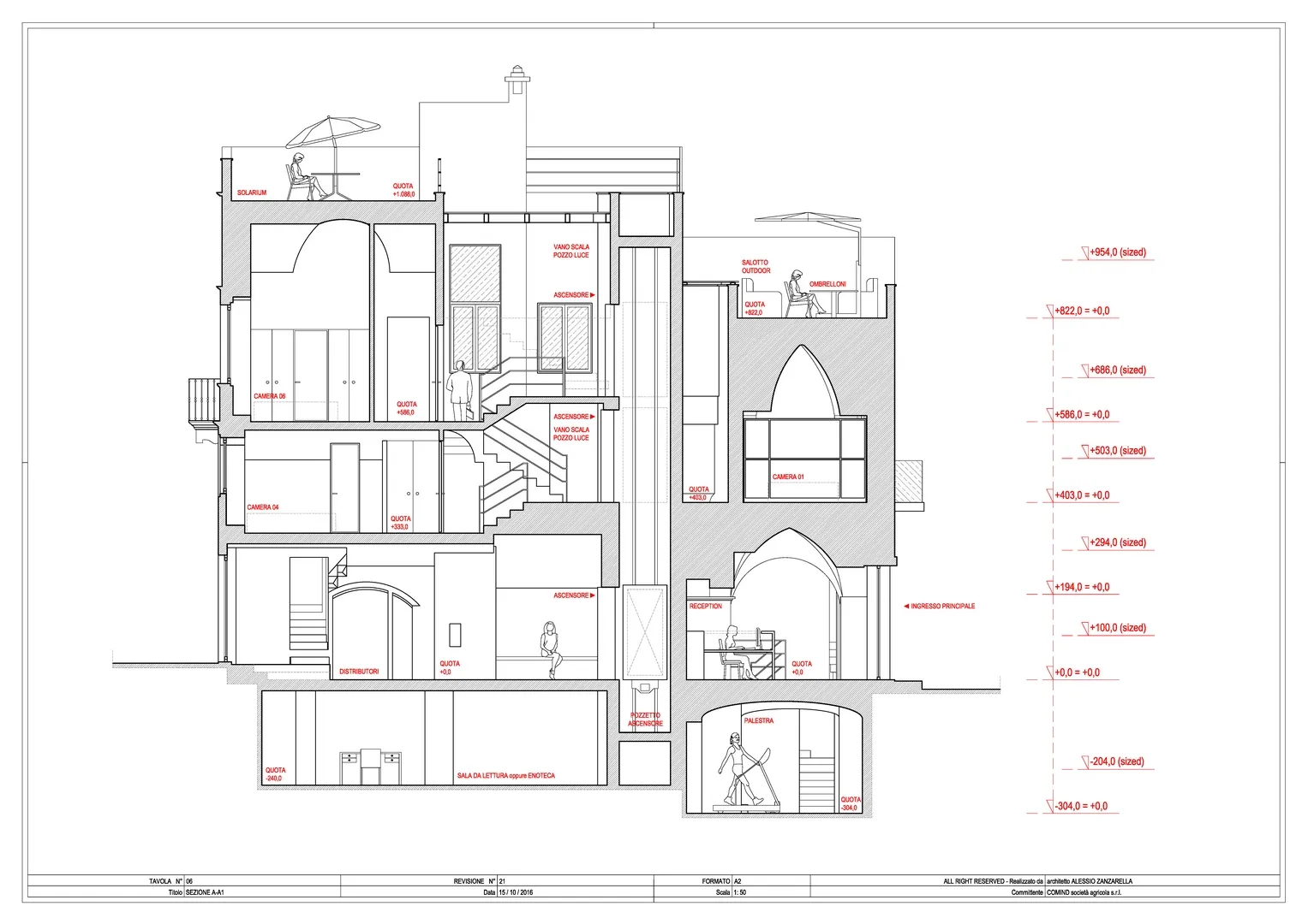 Effettuata la consegna del progetto di riqualificazione e riconversione in attività ricettiva dell'edificio storico di VIA CARROZZO, una strada prospiciente la Torre dell'Orologio (Manduria - TA). L'architetto Zanzarella in collaborazione con spazioAM ha effettuato le operazioni di rilievo, misurazione e digitalizzazione cad: un'attività piuttosto complessa trattandosi di un edificio apparentemente molto semplice all'esterno, ma notevolmente articolato all'interno, sia in pianta che in sezione. Successivamente il progetto curato interamente dall'architetto, secondo volere del committente, doveva prevedere la definizione di spazi ricettivi in alcuni casi autonomi (camere doppie o singole con relativi bagni) e condivisi (living, palestra, zona relax e solarium).