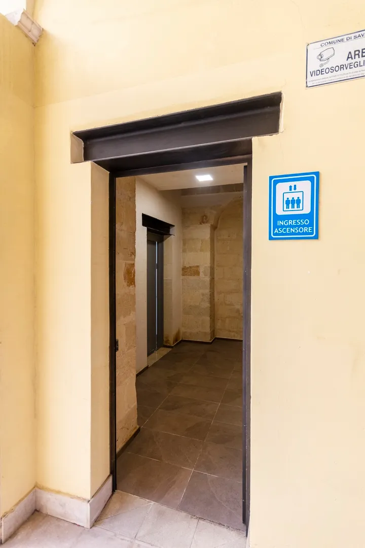 L’ASCENSORE che ho progettato e di cui ho seguito la realizzazione presso l’atrio del Comune di Sava costituisce uno dei lavori più complessi condotti di recente dal mio studio: una complessità insita soprattutto nell’iter burocratico che ha caratterizzato l’intero percorso progettuale.