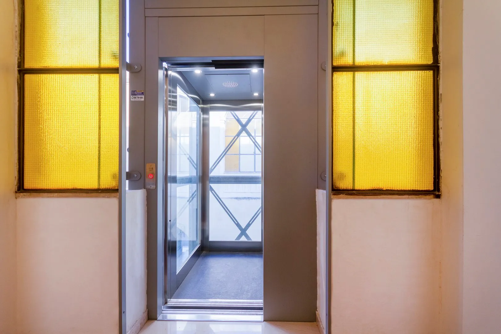 La Soprintendenza avrebbe accolto esclusivamente la proposta di un elevatore rivestito a “facciata continua” con cappotto in vetro trasparente e con un accesso dall’interno di uno degli spazi a piano terra. E così è stato: ho analizzato tutte le diverse possibilità, individuando un piccolo ripostiglio dismesso che sarebbe diventato l’ingresso al vano ascensore.