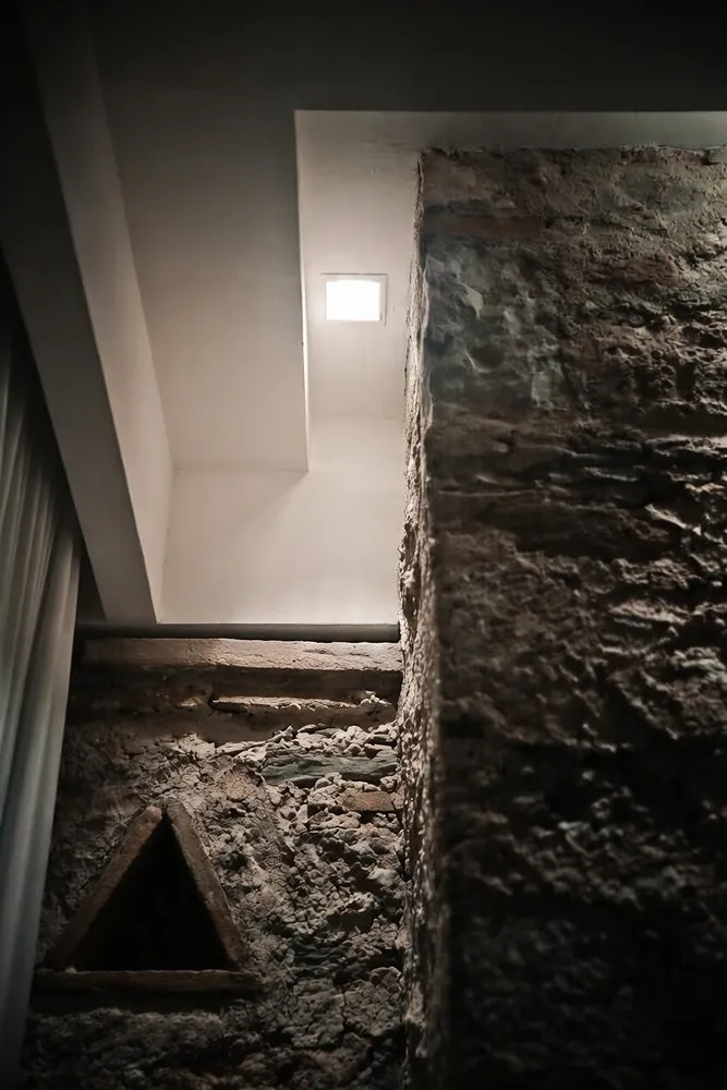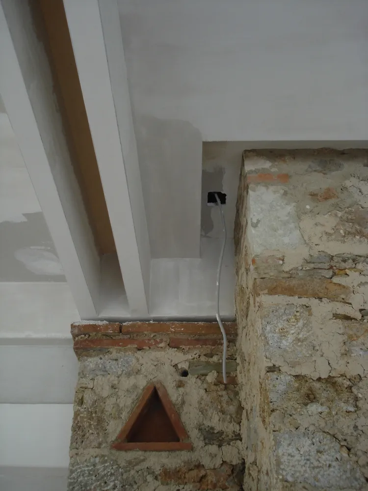 Altro aspetto importante della progettazione del controsoffitto, è che è stato progettato creando sempre una condizione di “stacco netto” rispetto alle porzioni di muratura autoctona, con un approccio conservativo, quasi come si trattasse di un progetto di restauro. Ogni singolo incastro, ogni singolo millimetro, è stato progettato con cura, con l’obiettivo di impreziosire e “onorare” le strutture storiche originarie. Scuretti, recessi, ribassamenti, gole sono gli espedienti attuati per progettare con un un approccio etico e protettivo del pre-esistente.