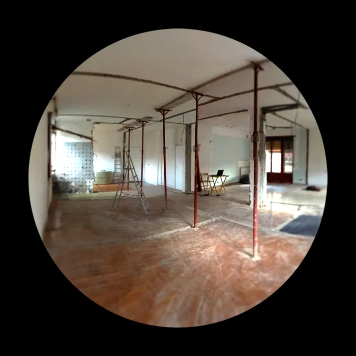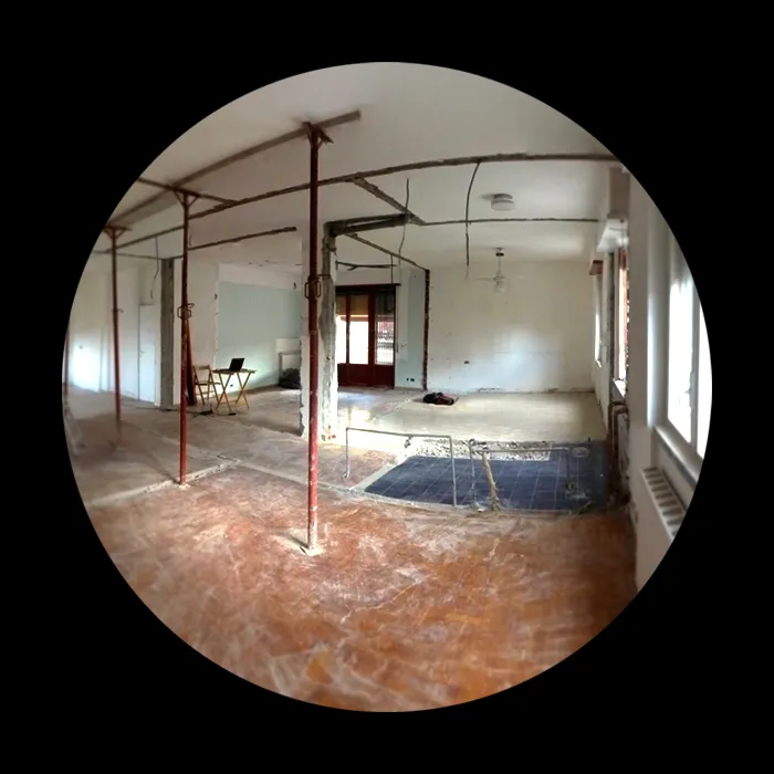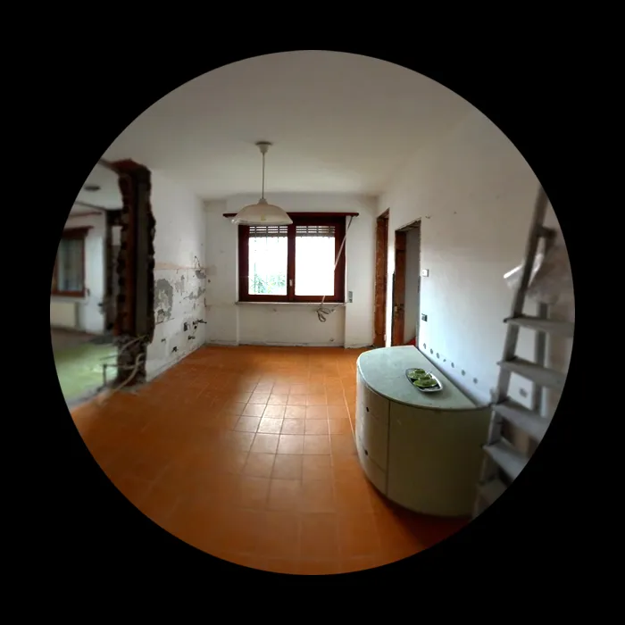 Proseguiamo con le foto delle demolizioni, in cui si può comprendere bene l’estensione della piccola residenza, la quale presenta uno spazio compartimentato che fin da subito ho pensato di convertire in un open-space. Si vedrà successivamente che l’eliminazione delle partizioni interne ha permesso di restituire continuità visiva e funzionale all’ambiente, valorizzando la luce naturale e rendendo gli spazi più fluidi e vivibili. Questa fase si è rivelata fondamentale per ridefinire l’identità dell’abitazione, trasformando un insieme di ambienti separati in un unico spazio armonico e contemporaneo.