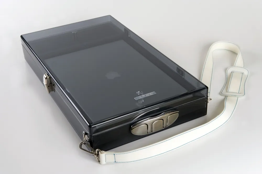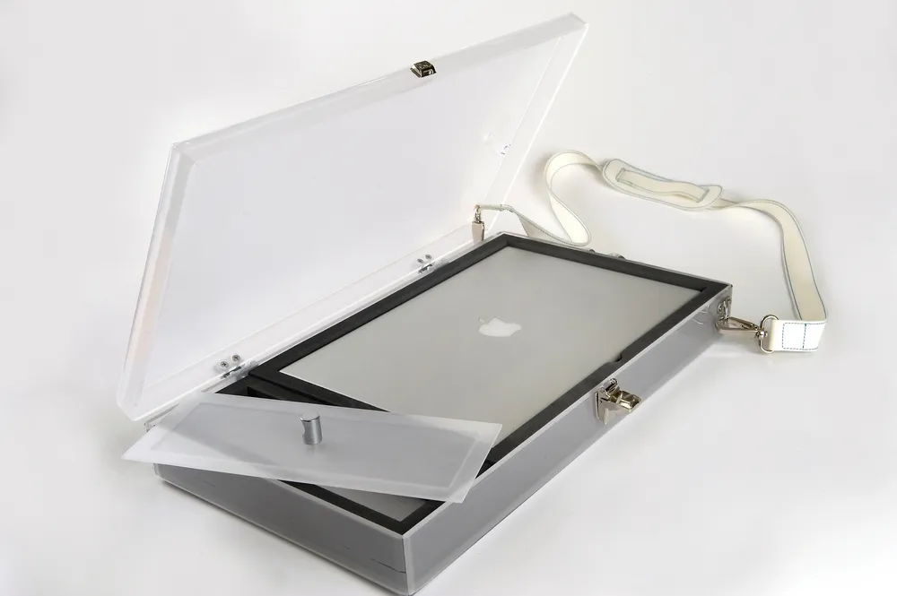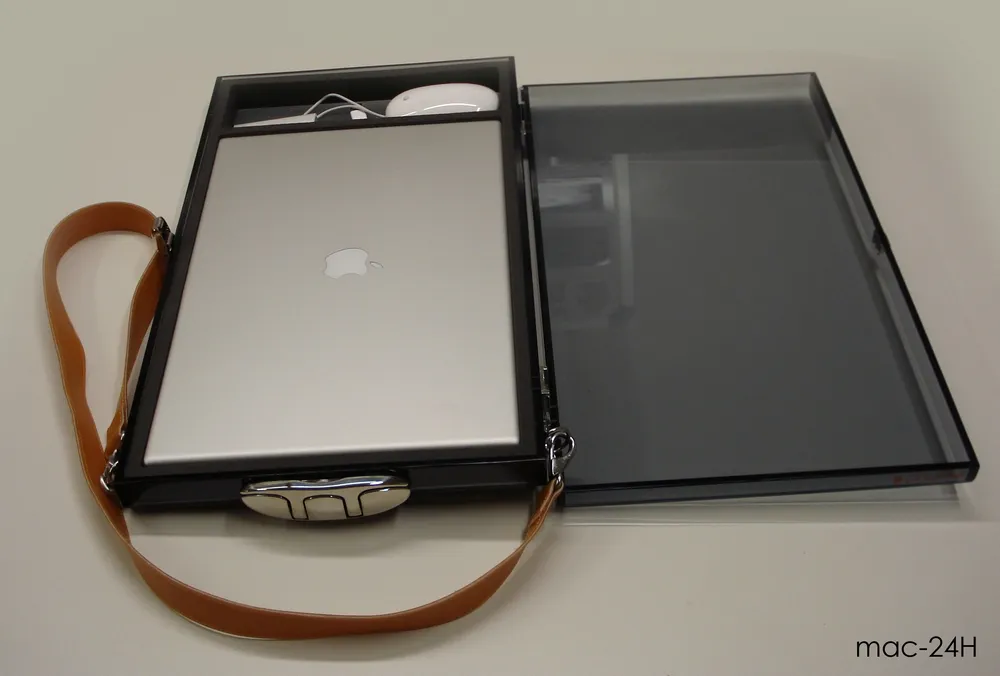 A seguire invece la collezione di contenitori in plexiglass, tra cui il porta-mac e il porta sacco a pelo.