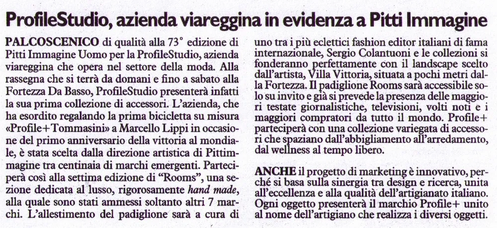 PROFILE+ è il nome del brand e del team che ho fondato a Viareggio nel 2007 insieme ad altri professionisti (Marco Crudeli, Franca Dini, Leonardo Arcucci, Riccardo Gabrielli, Iacopo Crudeli, Camilla Tomei, Simone Pardini) che si occupano di moda e tendenze e insieme ai quali ho collaborato per realizzare una linea di accessori dedicati al mondo della bicicletta.