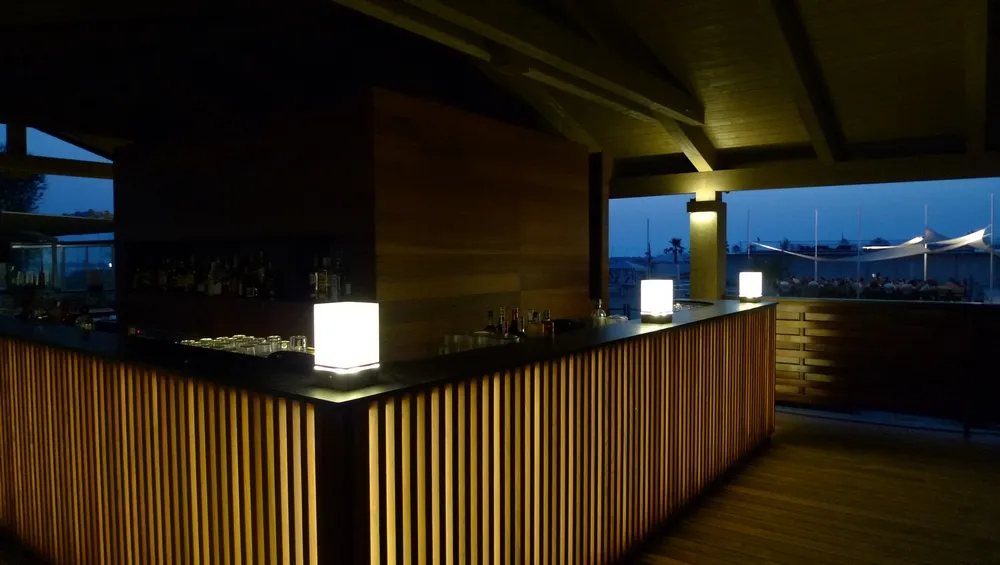 La prima produzione di lampade è stata effettuata per il famoso SEVENAPPLES, live music e disco pub di Marina di Pietrasanta (LU), che necessitava di un sistema snello per illuminare i tavoli sparsi nell'estesa area della discoteca; in aggiunta, la richiesta prevedeva anche l'incisione del logo del pub sullo scatolato opalino. Di seguito alcuni scatti effettuati nel Sevenapples.