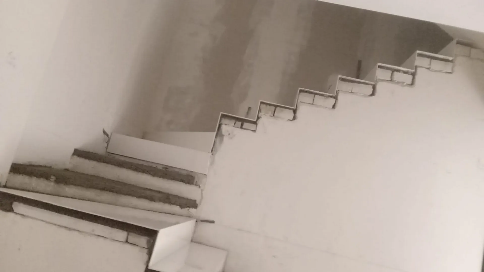 Di seguito invece, tutte le diverse fasi della cantierizzazione: la posa del gres, i lavori di ricucitura, l'installazione del parapetto in cristallo, la creazione della contro-parete in cartongesso spessorato, la posa in opera dei terminali in gres.