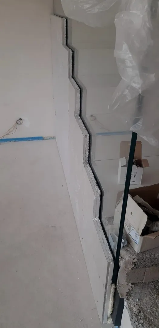 Il cliente mi ha coinvolto per ottenere una scala con parapetto in cristallo con fissaggi invisibili. In altre parole, desiderava che il parapetto “spuntasse” dal gres senza vedere i profili o le “pinze” di fissaggio perché normalmente inficiano la leggerezza del cristallo e spesso costituiscono un pugno all’occhio, visivamente “ingombranti”.